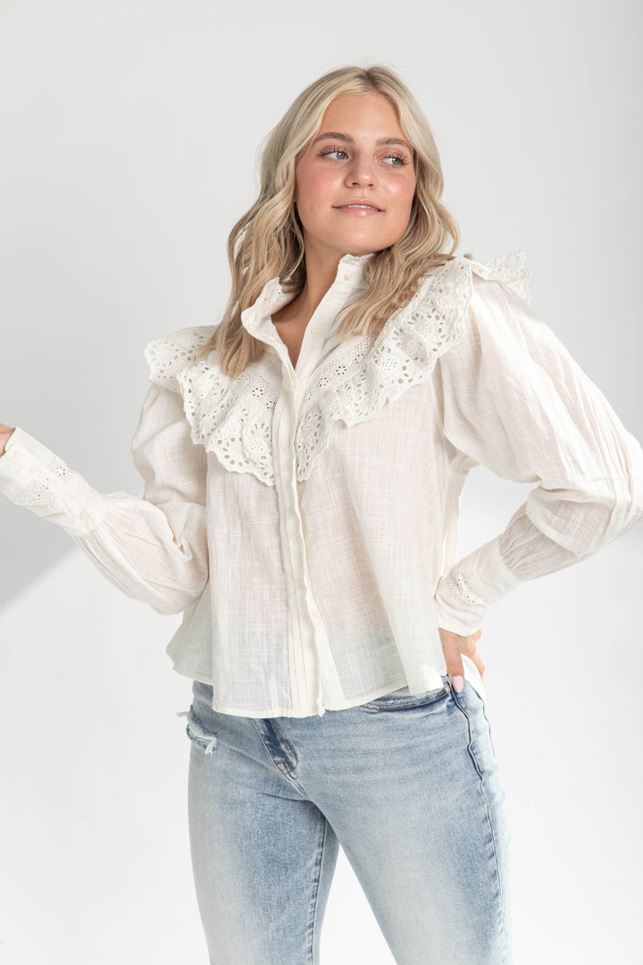Piper & Scoot Free People: Hit The Road Buttondown In White Tops