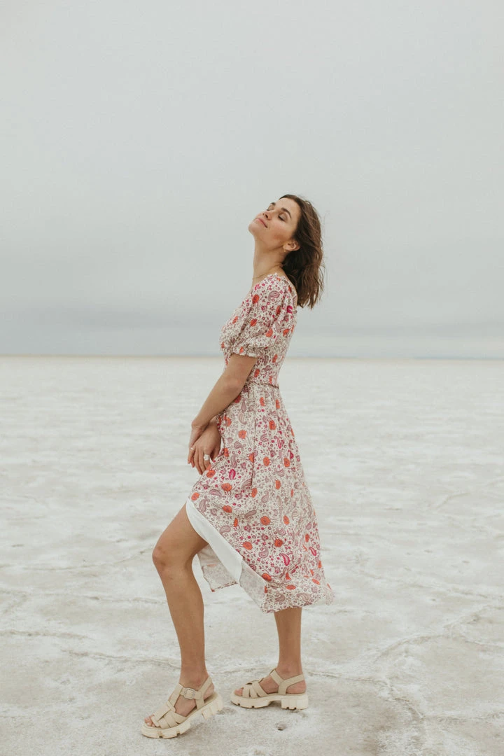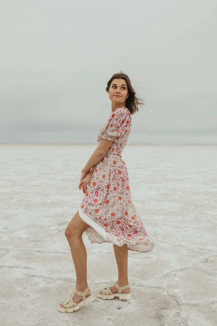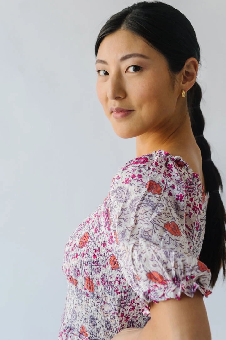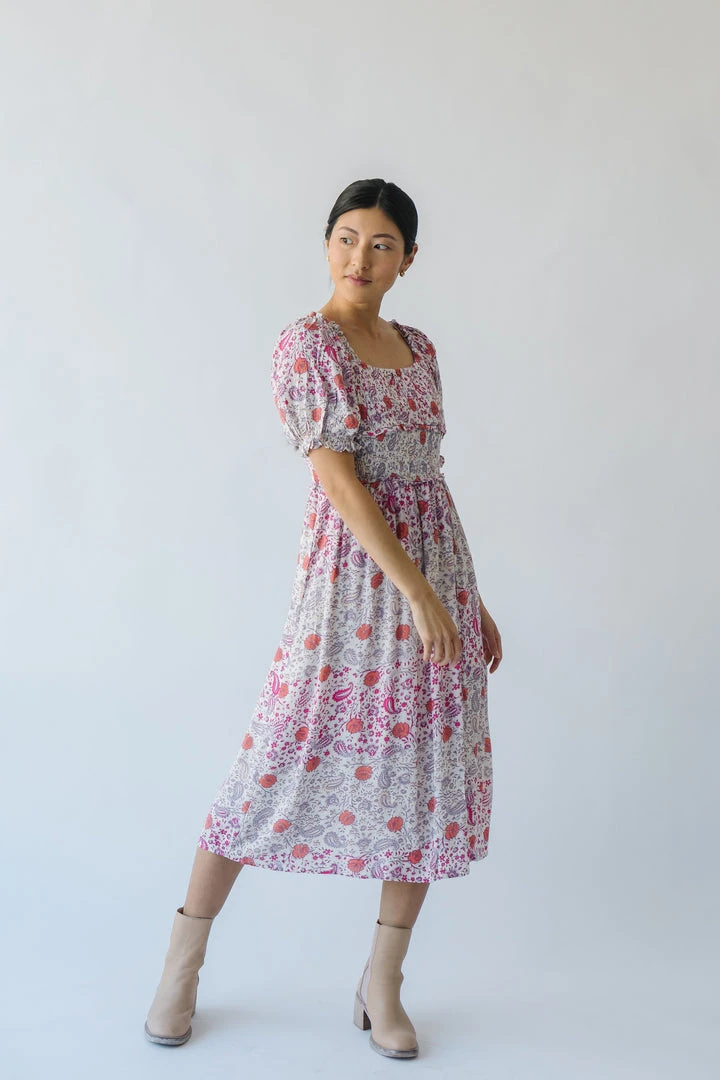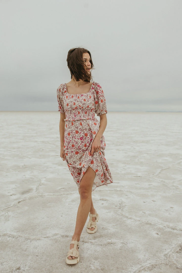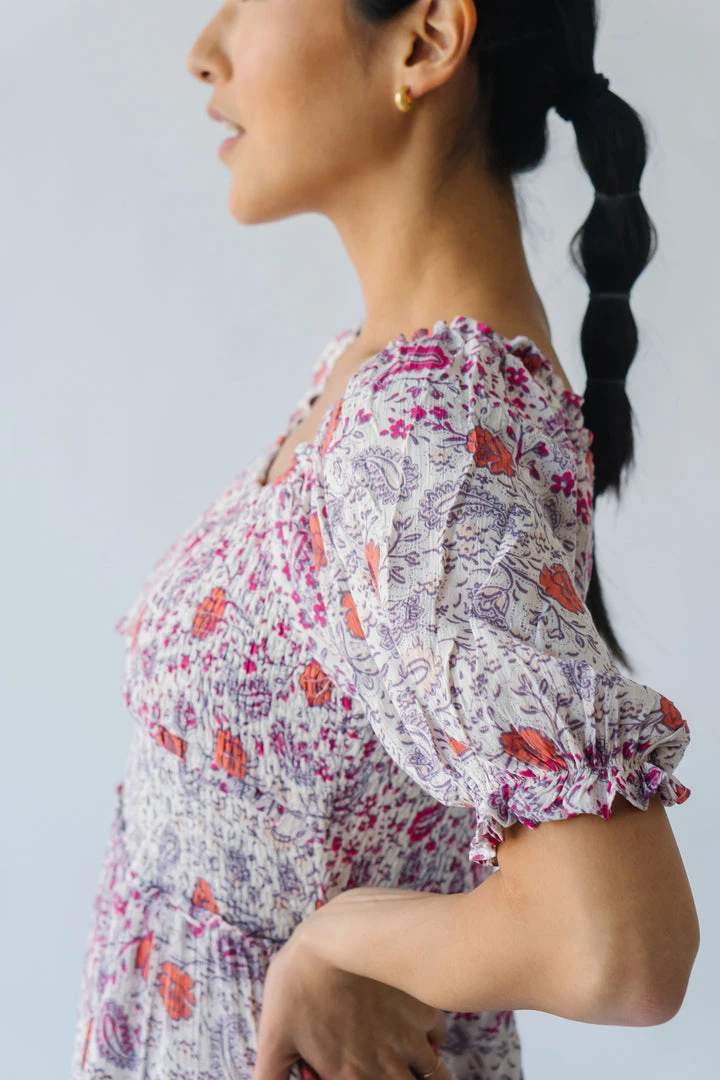 The Myla Floral Dress is as flattering as it is comfortable. It comes in inclusive sizing, has a flexible smocked top, and a tiered skirt. There is ruffle detailing that adds a feminine flair. It comes lined.Â
