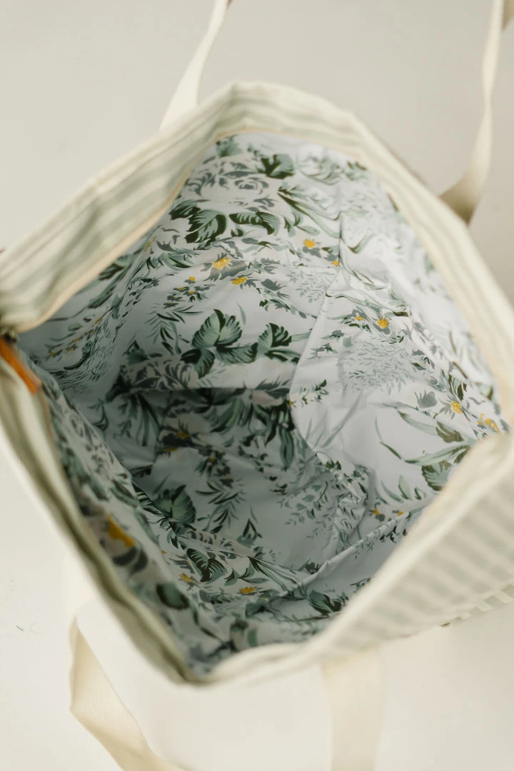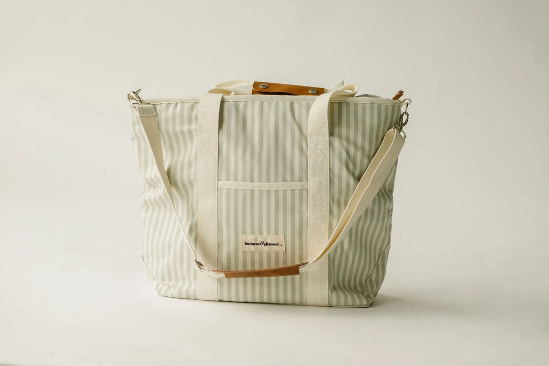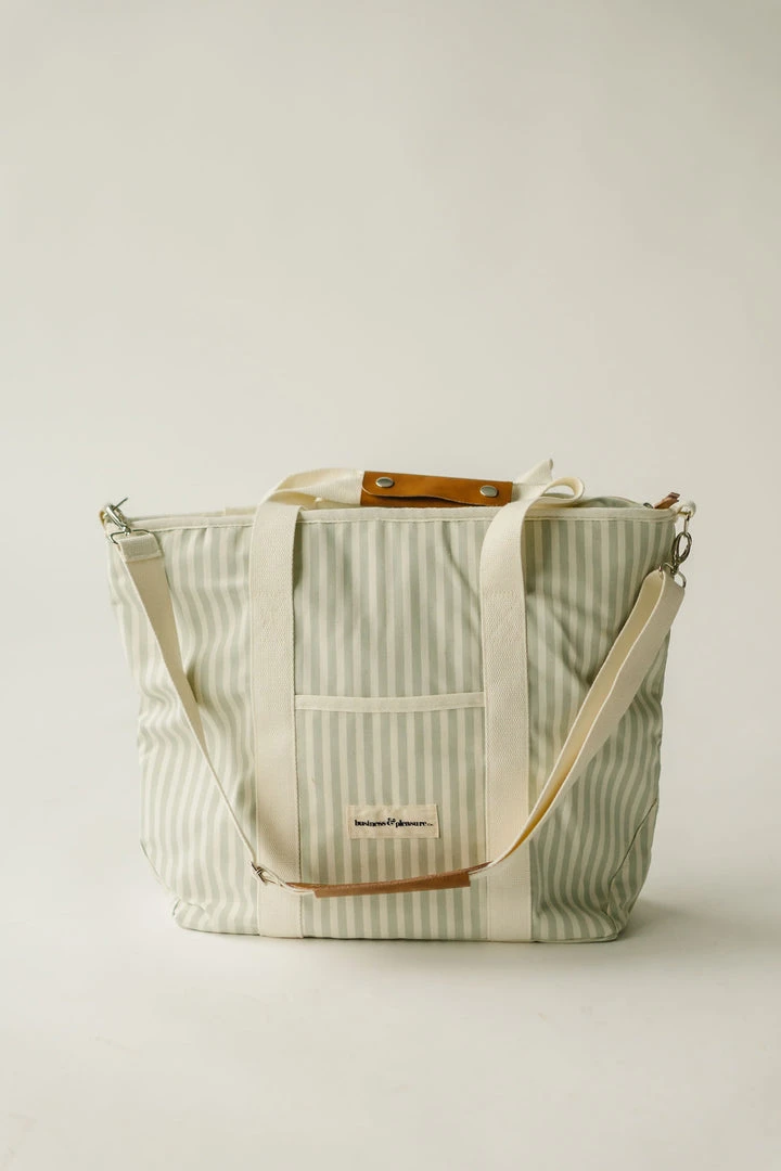 Piper & Scoot Accessories The Cooler Tote Bag In Sage Stripe