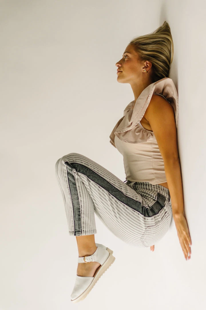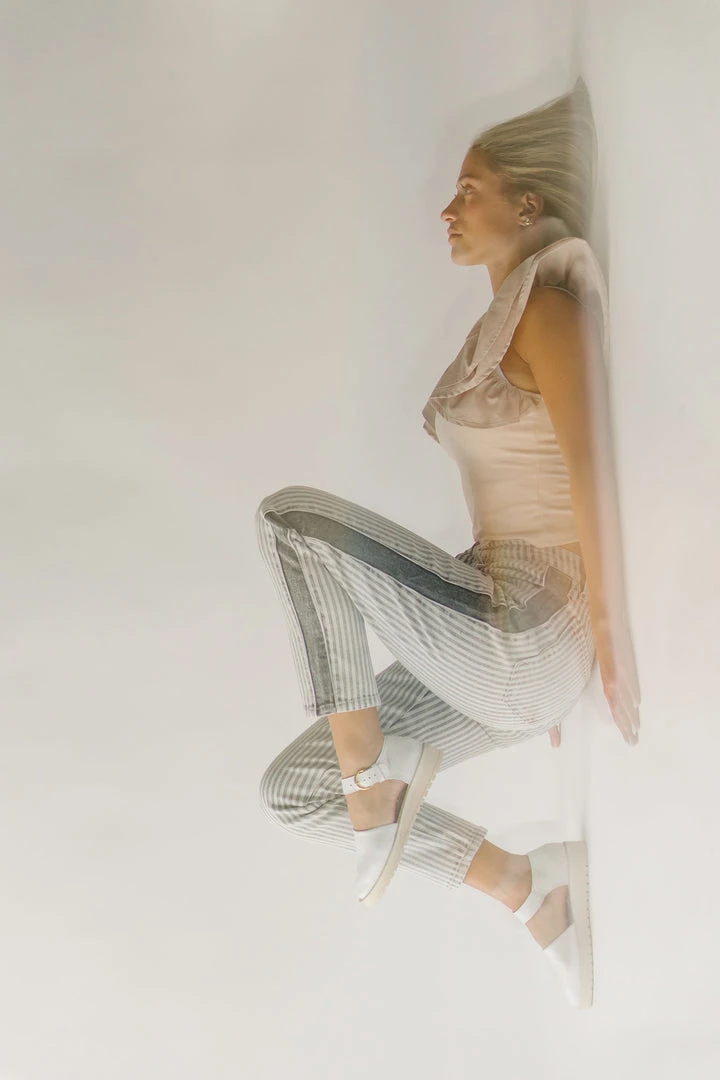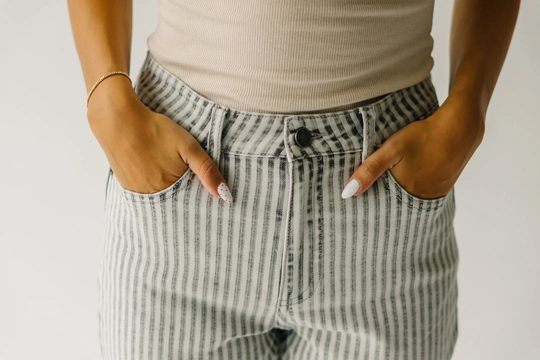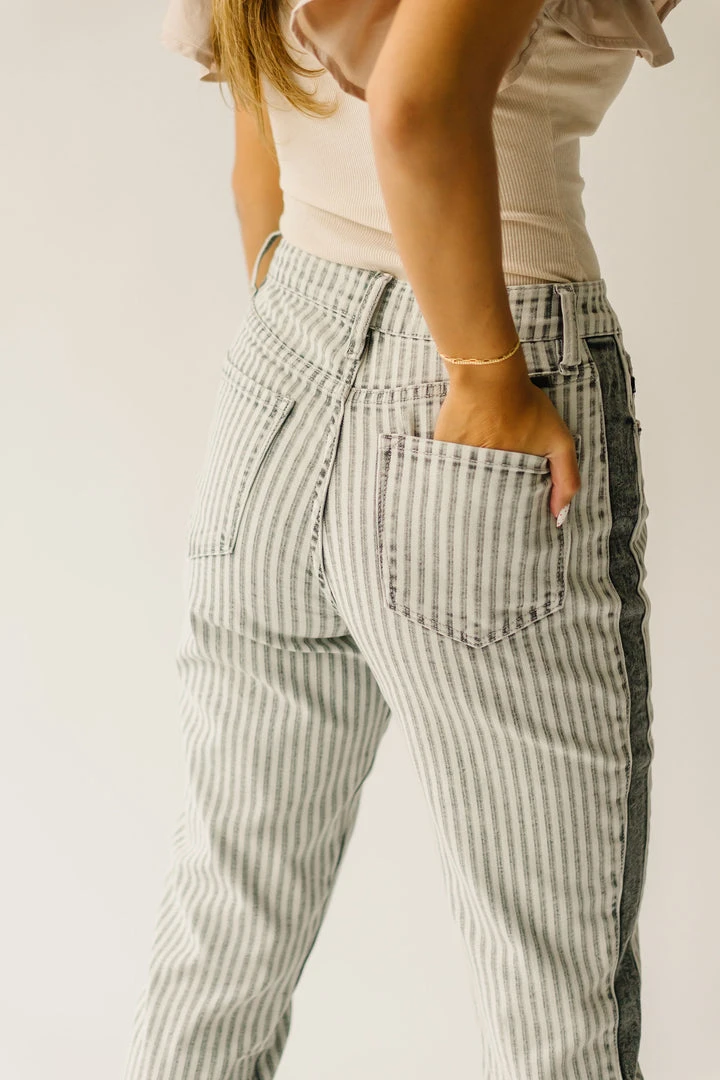 The Kamri High Rise Straight Jean has vertical stripes + a panel down the side to give the illusion of length. They sit higher on the waistline + are a straight style. Â