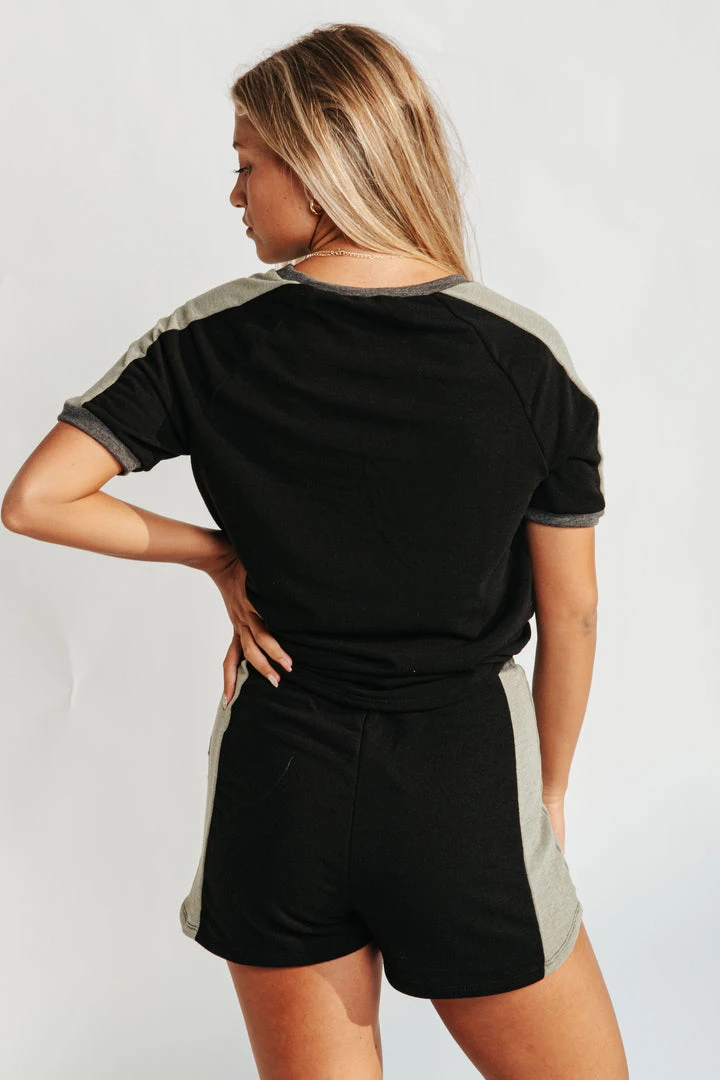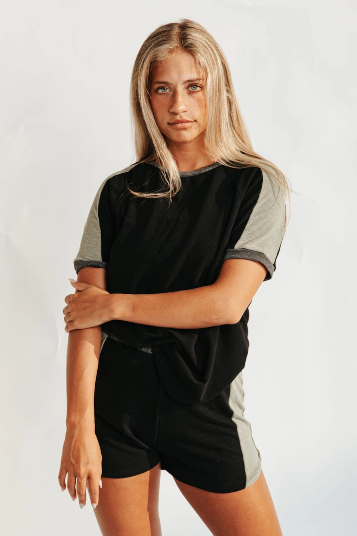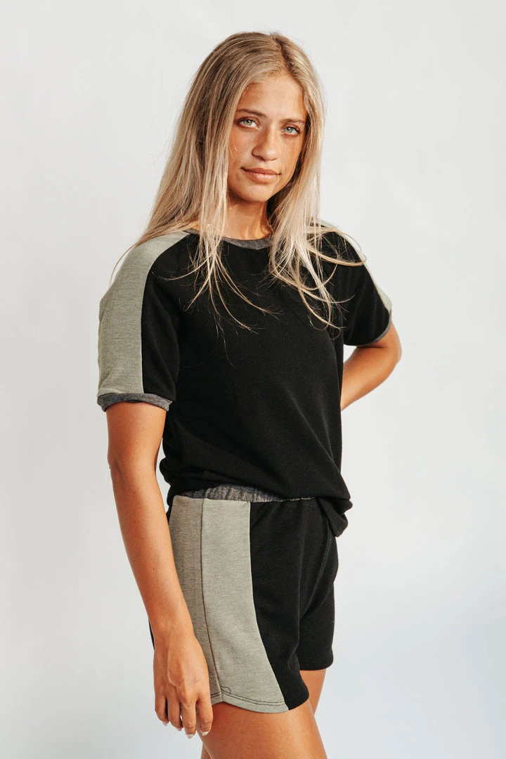 A comfy color-block sweat short. The Queens Color Block Shorts are stretchy with a contrasting colored panel on the sides. They have a thick elastic waistline + a flattering fit. Pair with The Brooklyn Color Block Tee to create a set.Â