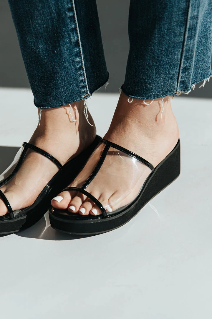 Clear vinyl with shiny black piping adds a high-end look to an old-school wedge style.Â