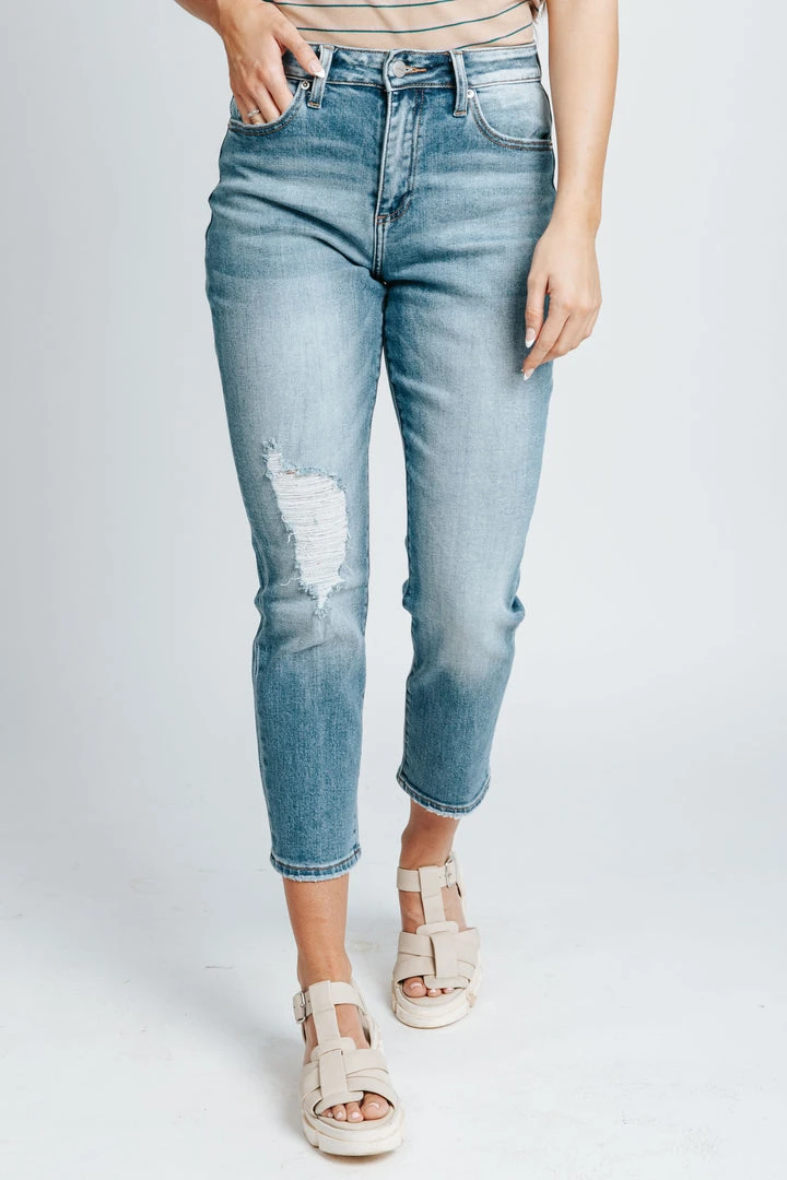 Piper & Scoot Denim: The High Rise Mom Jean In Medium Blue Bottoms + Jumpsuits