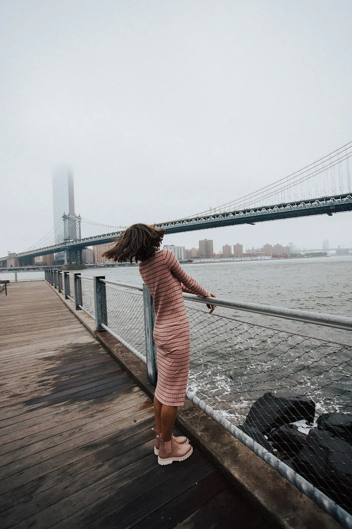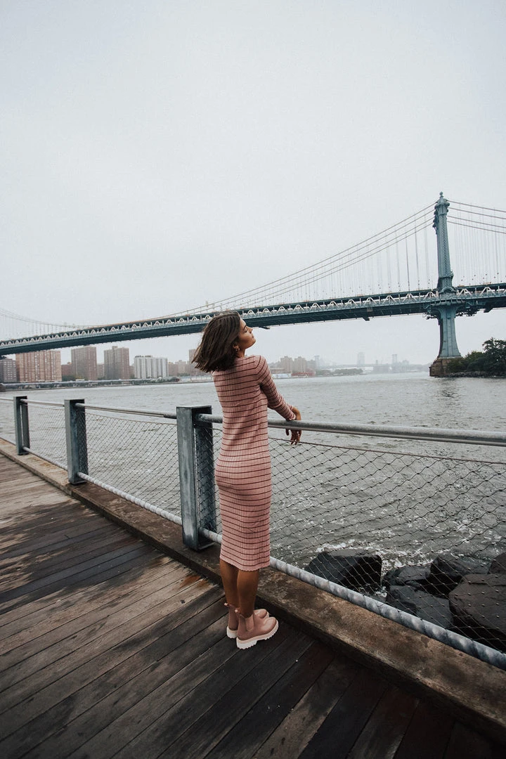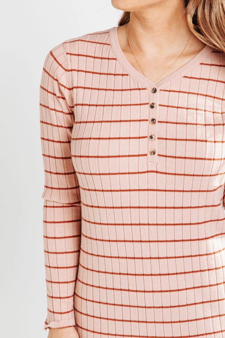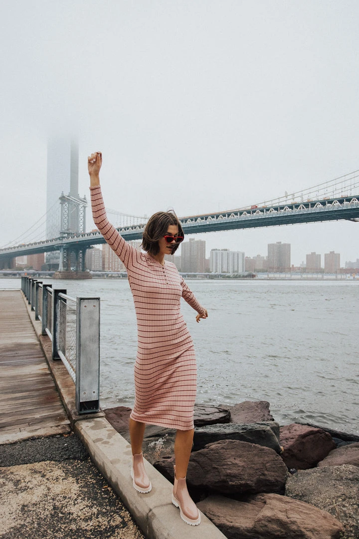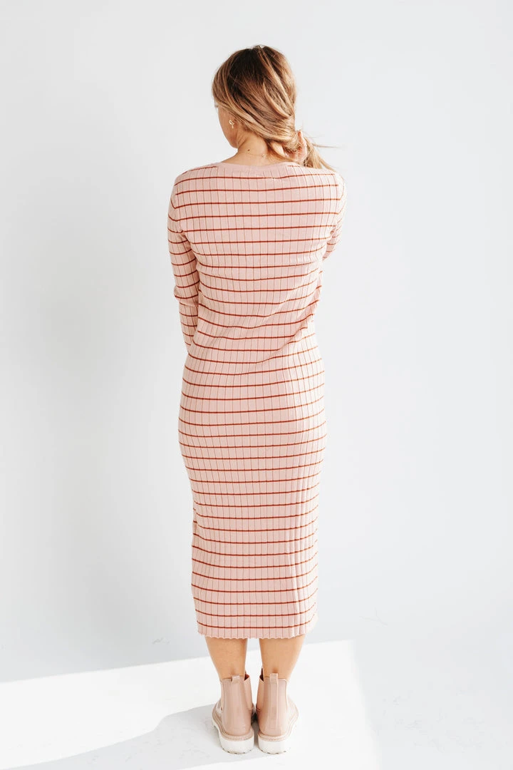 The Bacher Striped Midi Dress is a slimmer style with plenty of stretch. It has horizontal stripes + long sleeves. It can be layered + worn year-round. Maternity + nursing friendly.