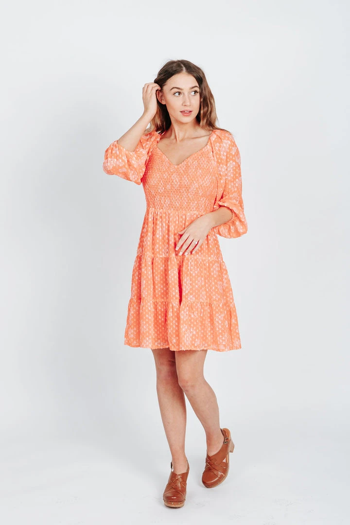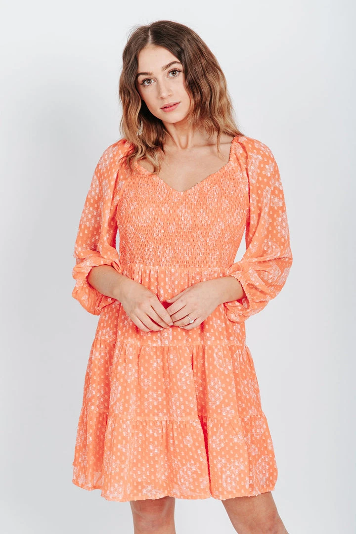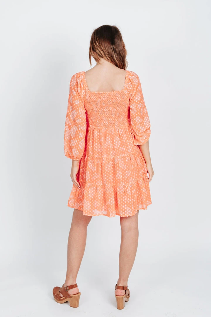 The Bonnie Smocked Mini Dress has vintage vibes with its print + fit. The smocked bodice is flexible + flattering. It has a tiered skirt in a shorter style. It is lined.Â