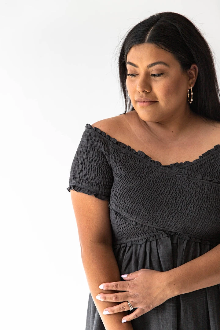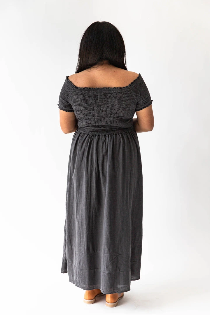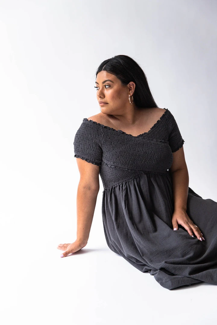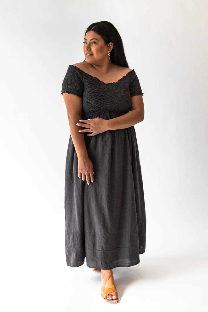 The Greg Smocked Maxi Dress provides comfortable coverage. It has a cross-smocked bodice that offers a flattering look. It has an empire waistline + comes lined.