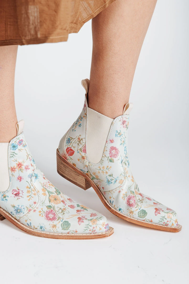 So stunning + effortlessly eye-catching, these cool ankle boots are featured in a western-inspired silhouette + buttery soft leather with elastic side accents, a minimal wooden block heel, and a bold pointed toe.