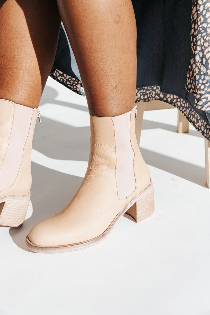 These chelsea style boots have a cushioned insole, zipper back closure, and elastic side accents. They have all the classic details you love with a comfortable fit in a neutral color.Â