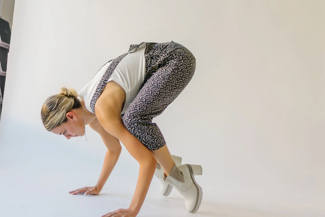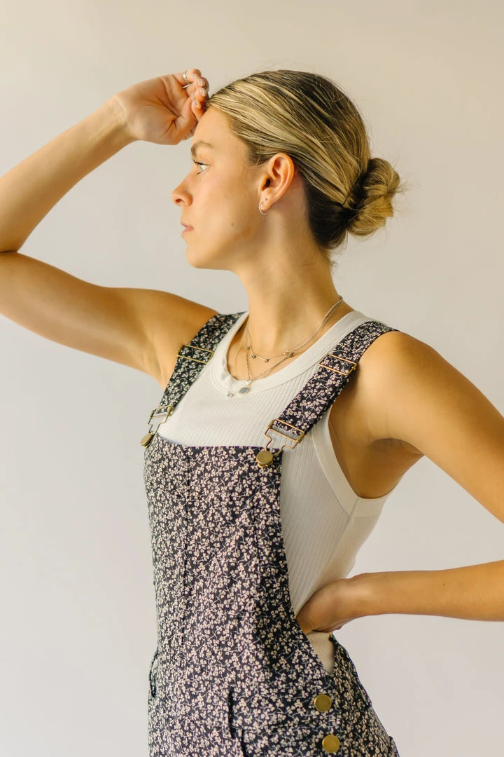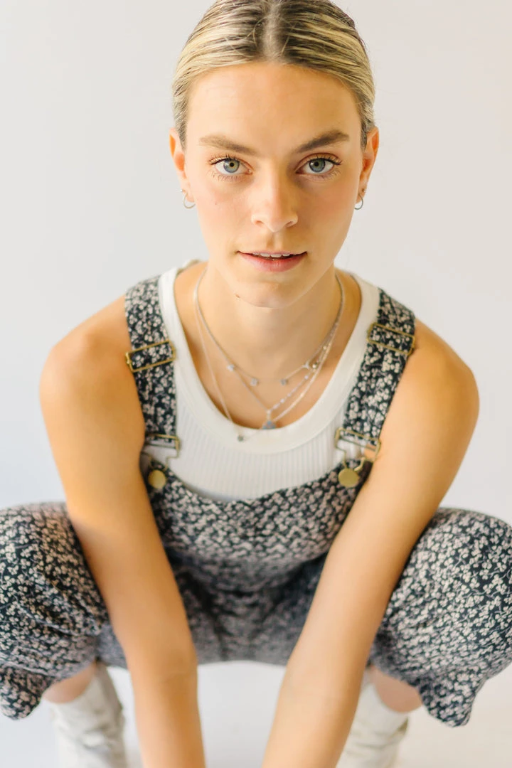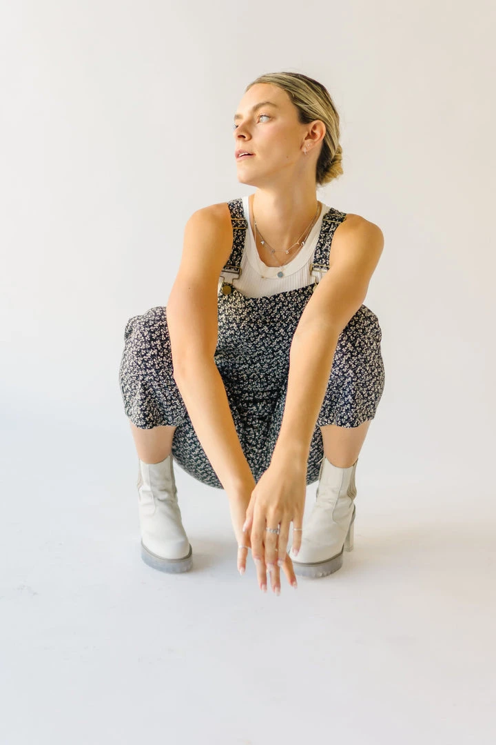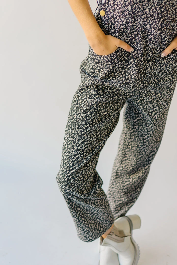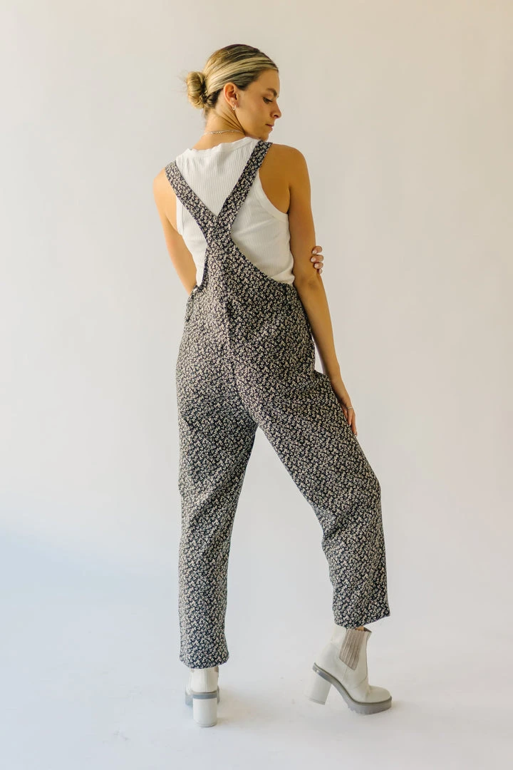 The Bruno Floral Overalls have adjustable straps. They have brass hardware with a floral print. They can be worn year-round. They have a slightly cropped wide leg.