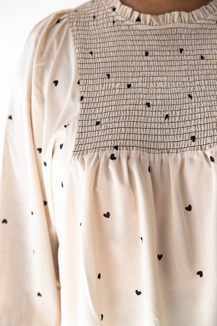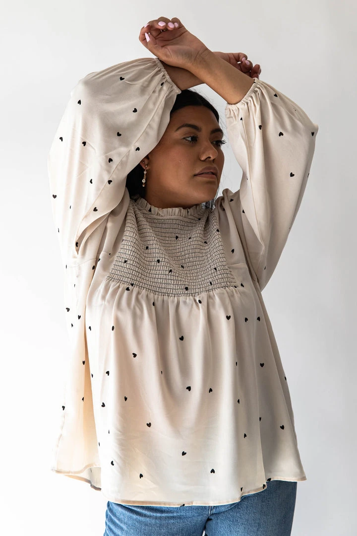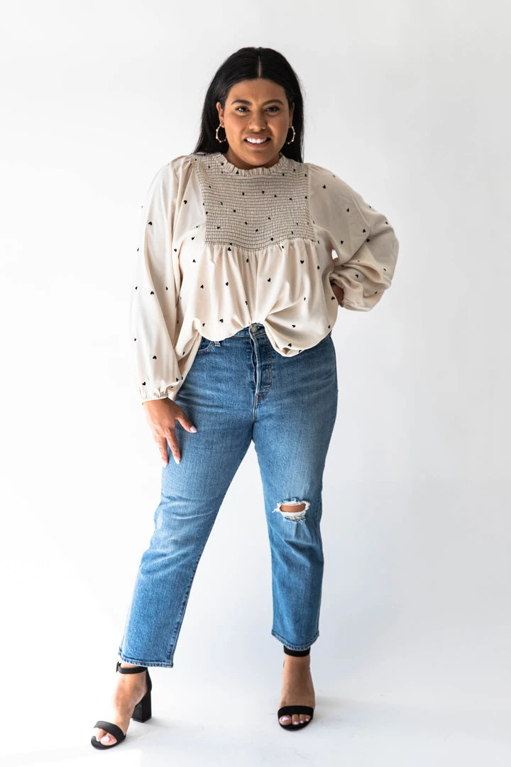 The Caprice Smocked Detail Blouse has a flowy fit with lots of pairing potential. It has a ruffled neckline, a smocked upper bodice, and a traditional length.