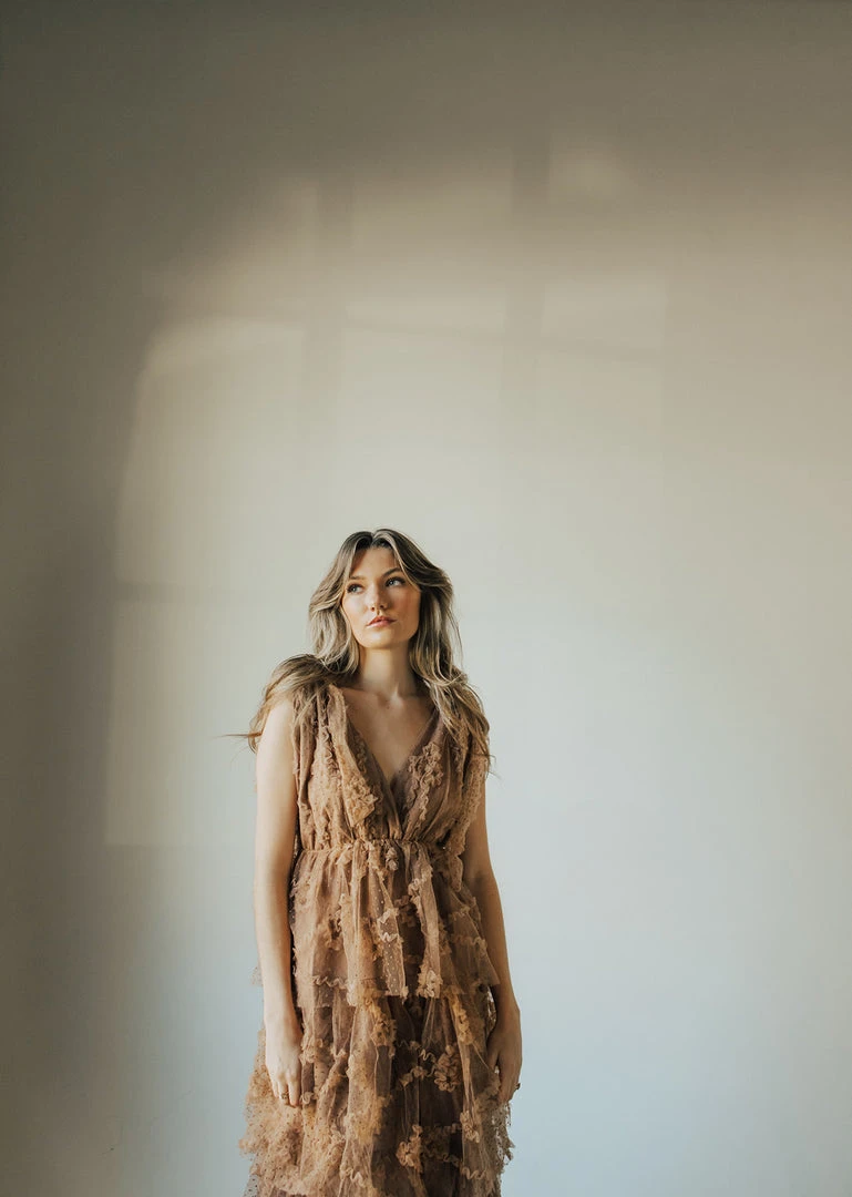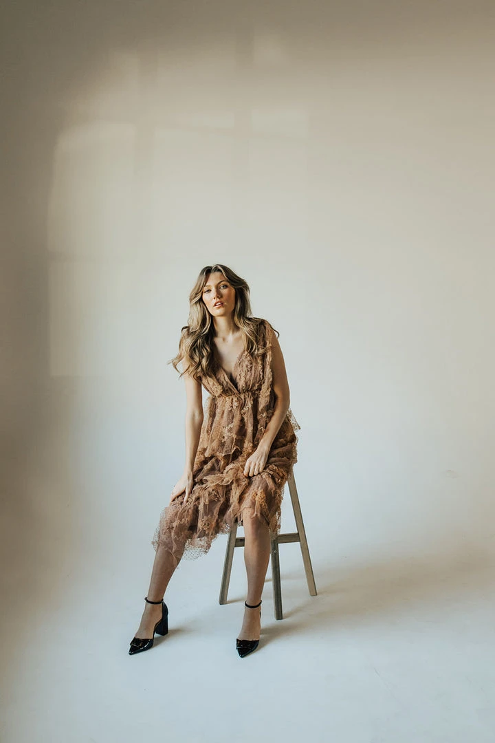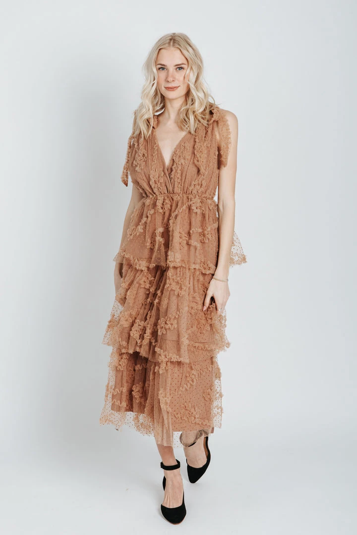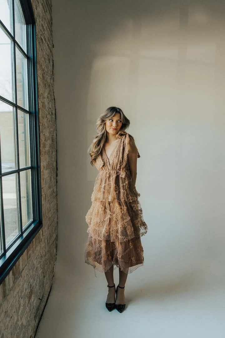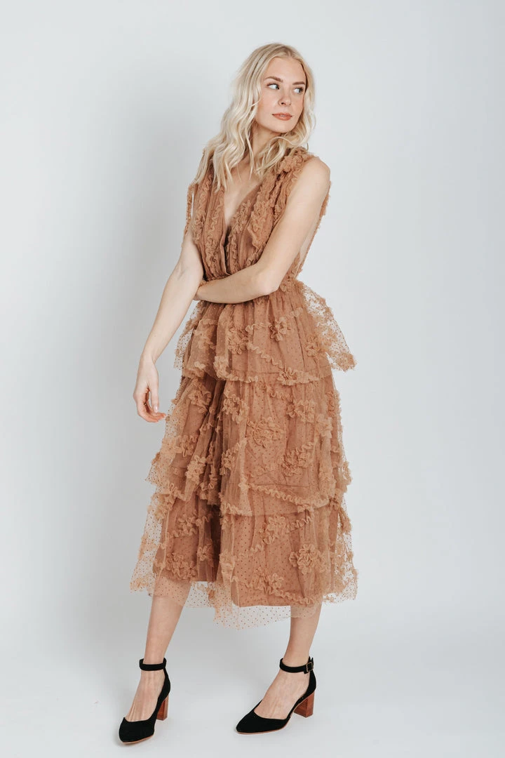 Piper & Scoot The Charlotte Chiffon Tank Midi Dress In Mocha