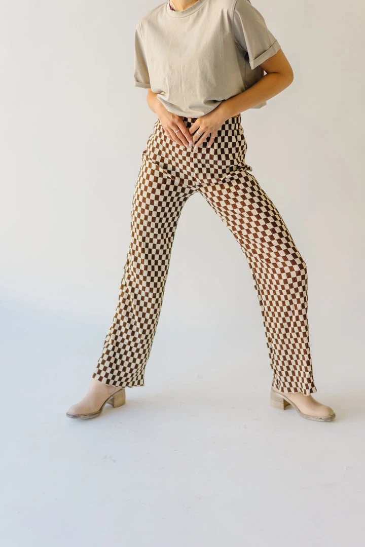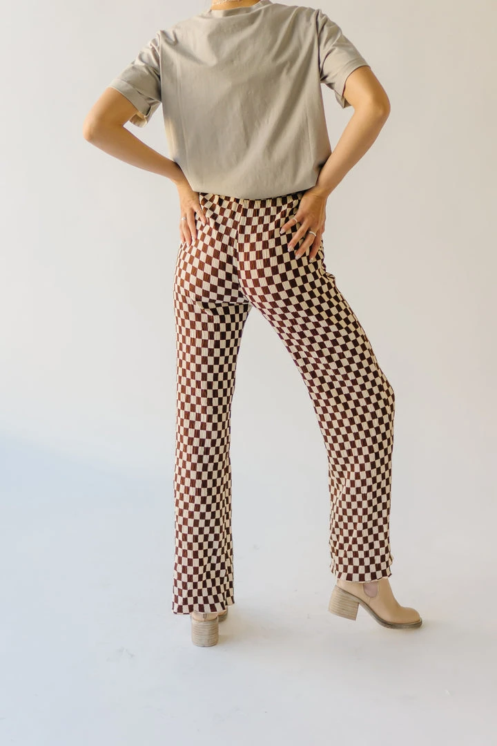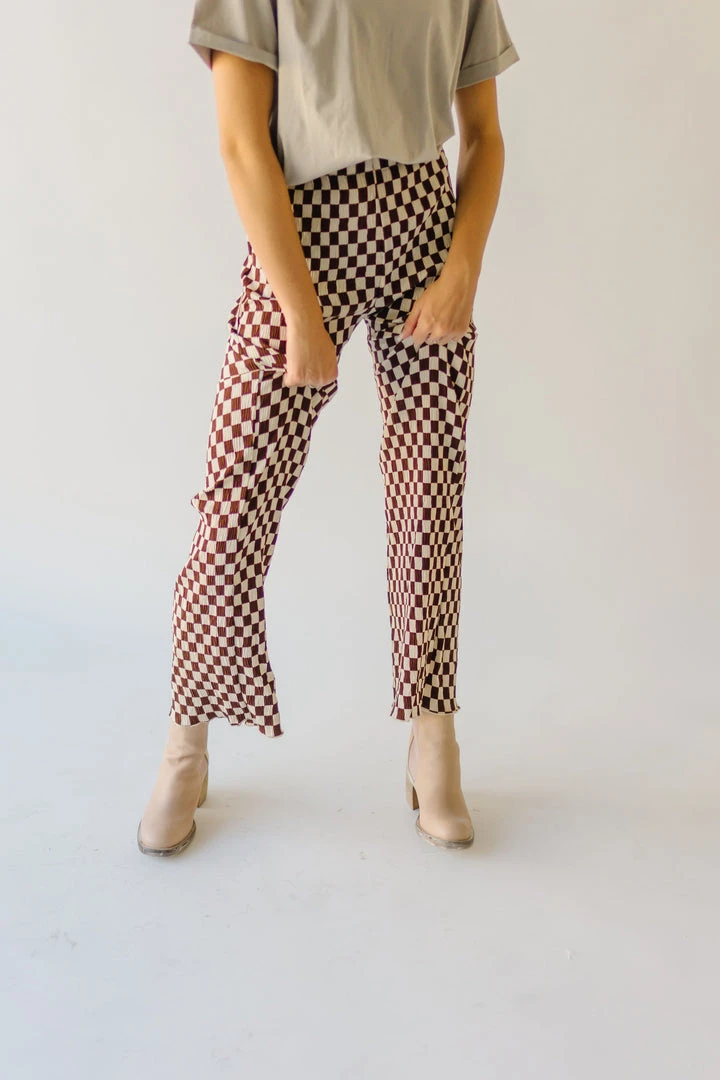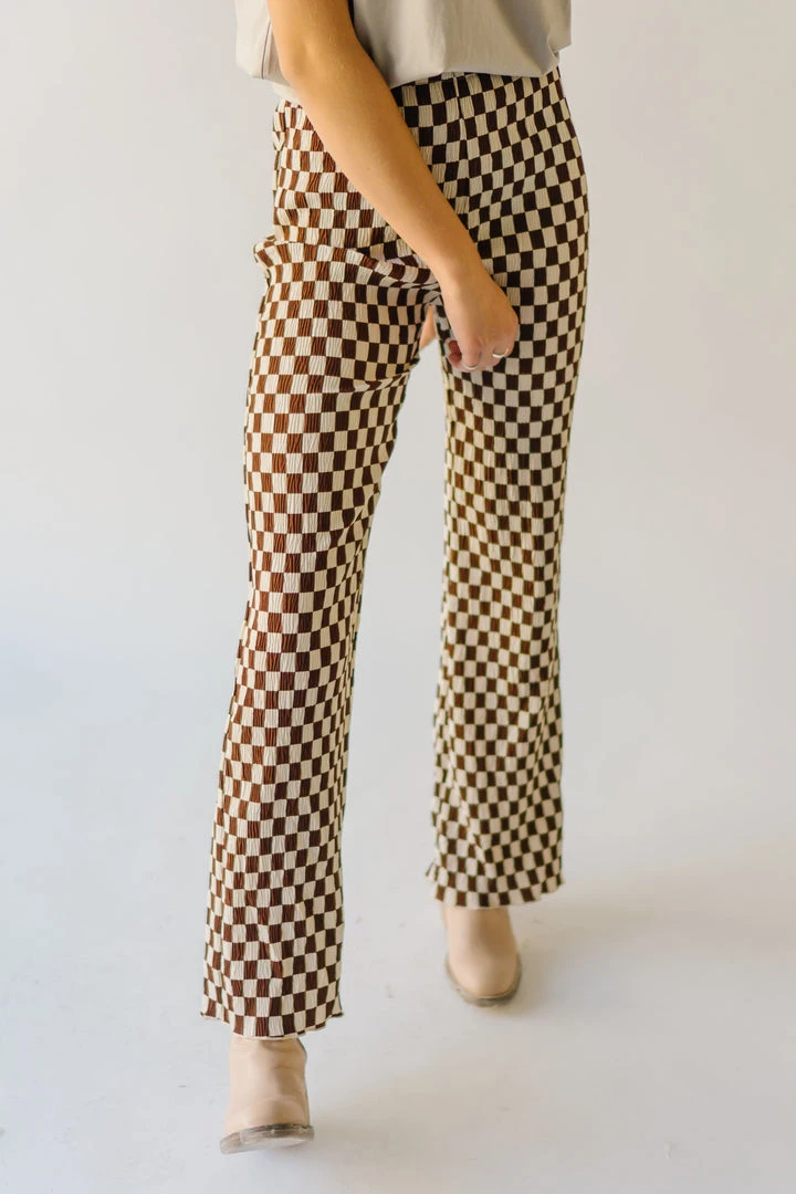 Checkmate. The Corina Pleated Trousers have a stretchy waistline. The pleats create flattering flexibility in a neutral check pattern.Â