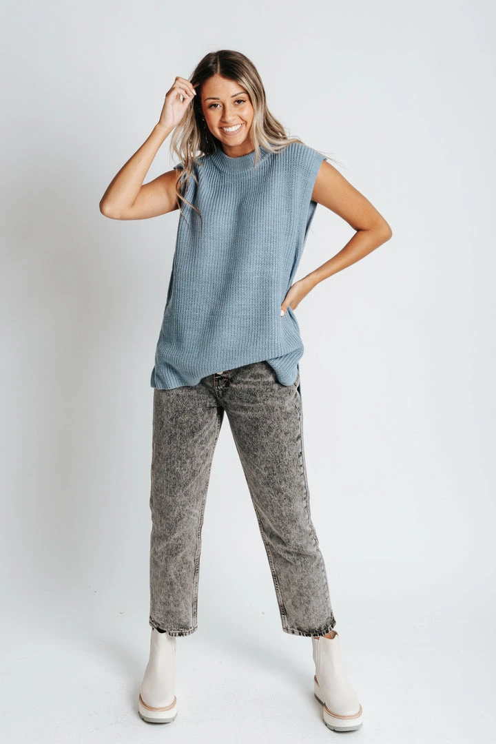 The Doran Sweater Vest has all the fall feels. It is a knit style with a rounded neckline + tank style. It has a longer length + slightly looser fit. Layer it or leave it alone but definitely wear it.Â