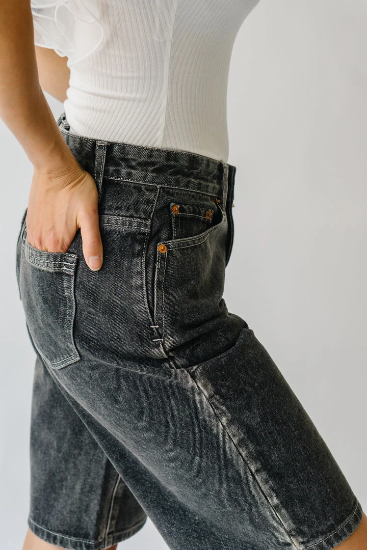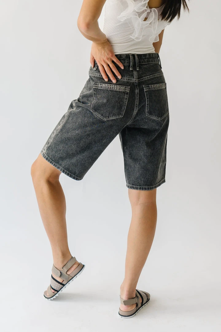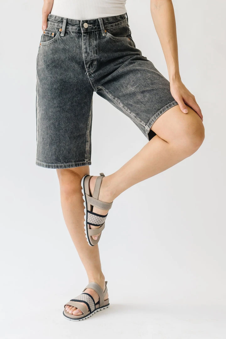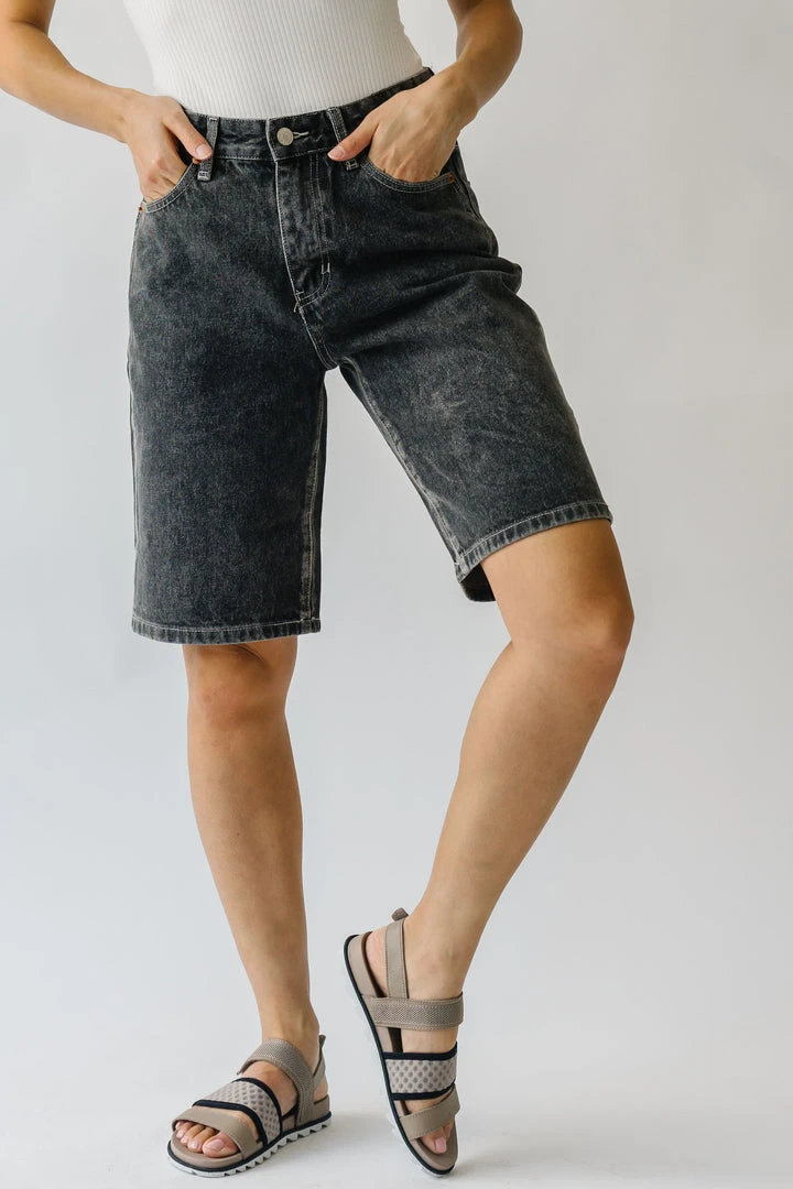 The Hanlon High Rise Bermuda Shorts have a slightly slouchy fit in acid-wash black. They sit higher on the waistline in a looser leg style. They are a great option to pair with graphic + band tees.Â