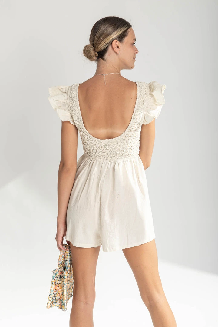 The Hilda Smocked Detail Romper is a one + done outfit that makes getting ready a breeze. It has a smocked bodice with a scooped low back. It has ruffled sleeves + flowy shorts. You’ll be ready to run errands or head to lunch in style.