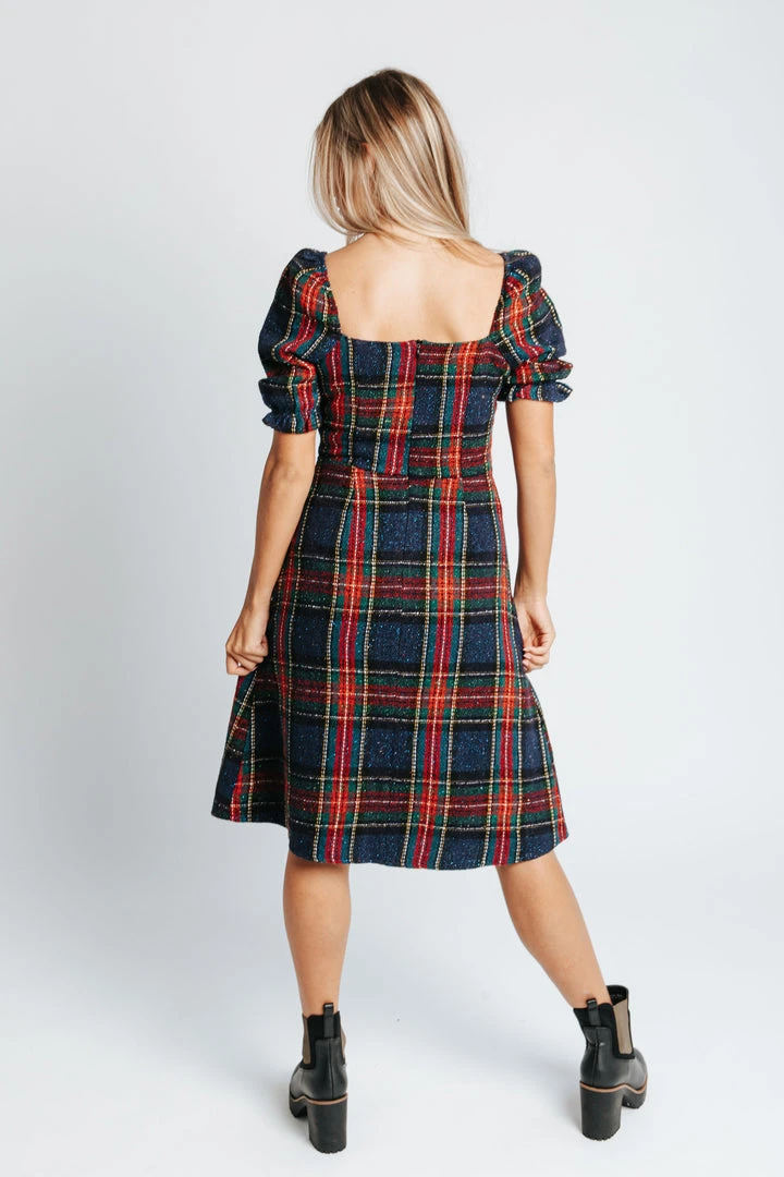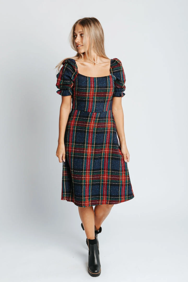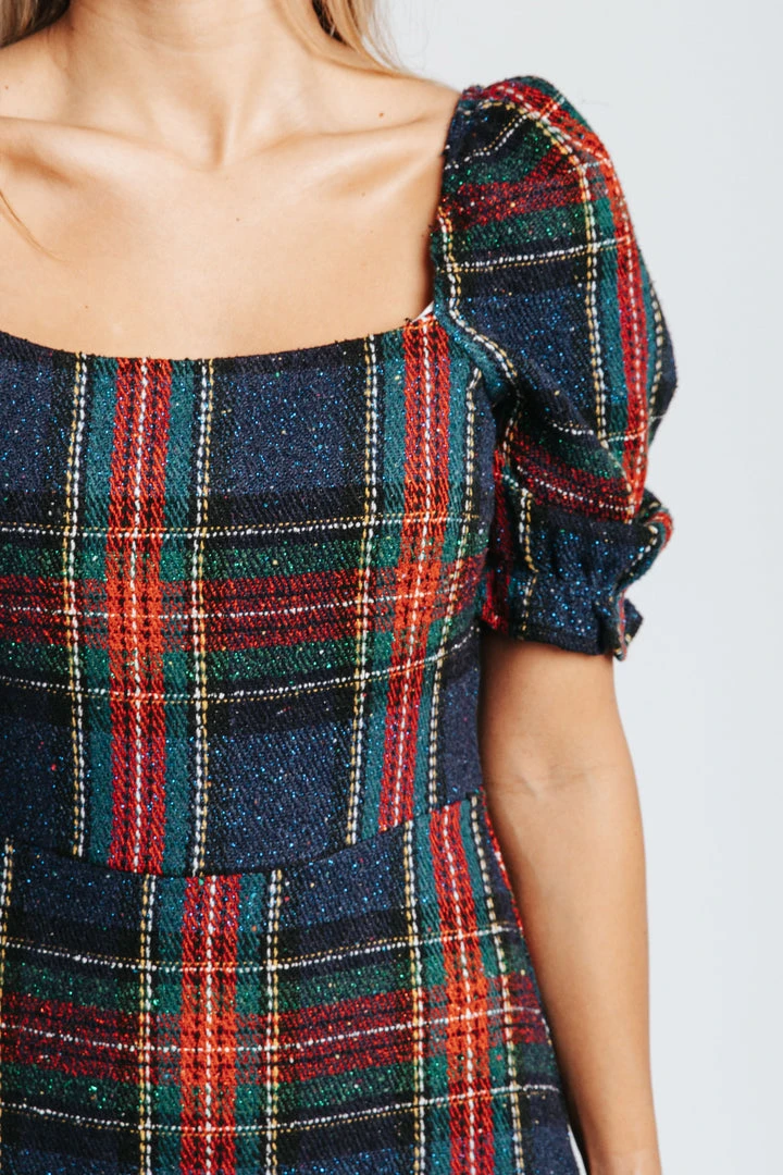 Feeling fashionably festive! The Holiday Plaid Dress has a square neckline + back with a structured waistline. The sleeves have an elastic cuff. It comes lined. So plan those parties + don’t forget to take pics!