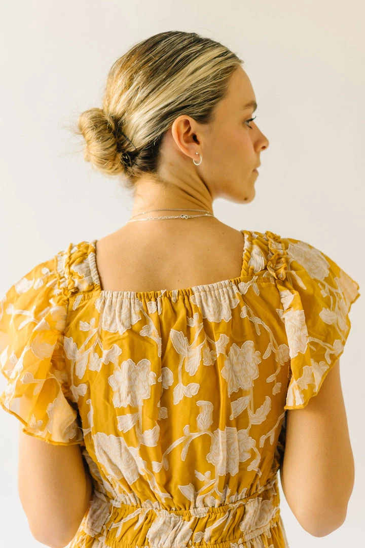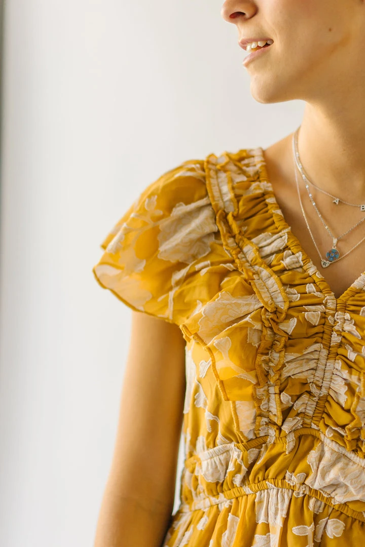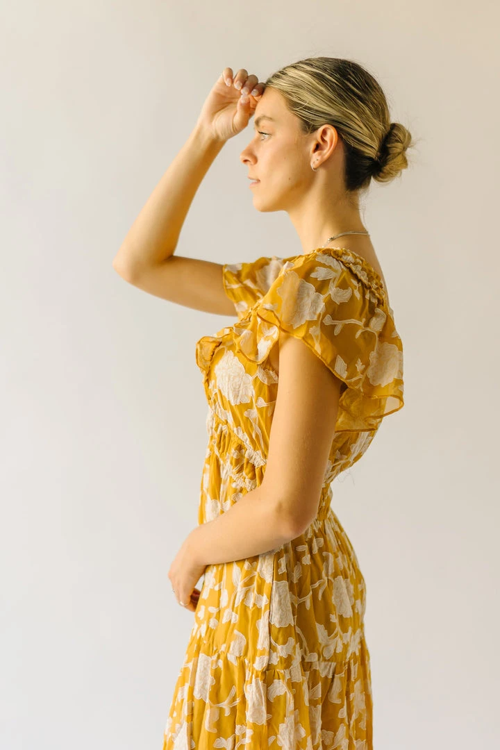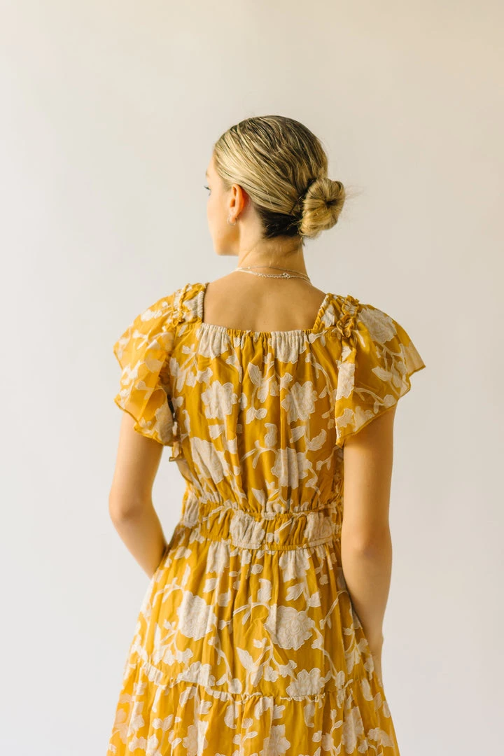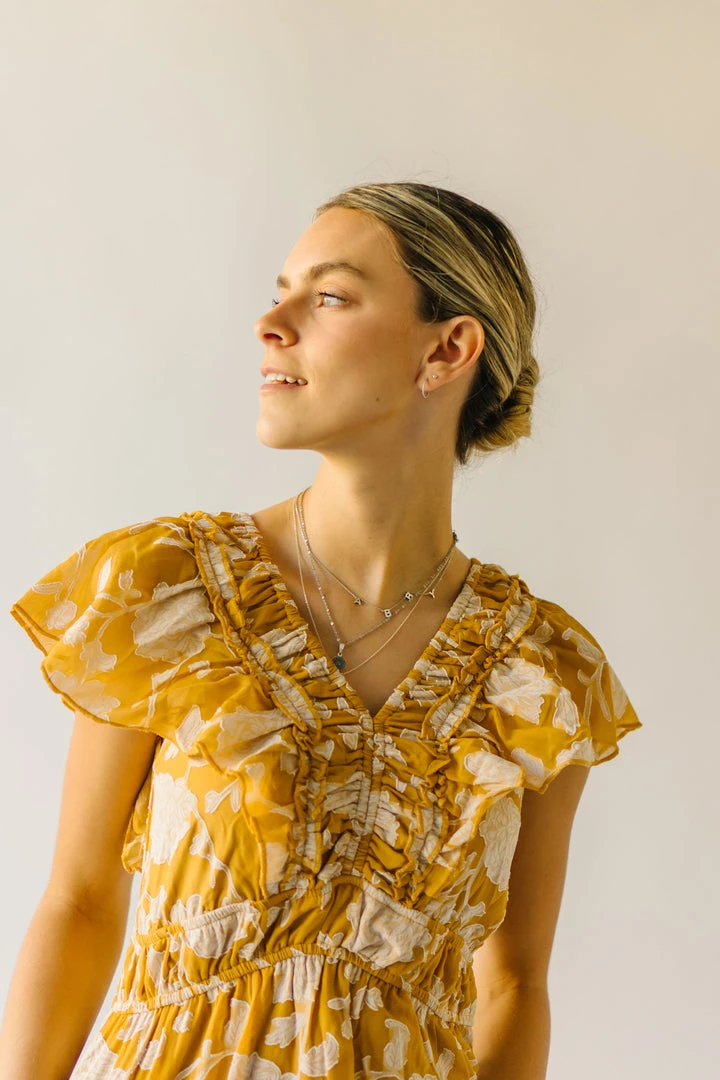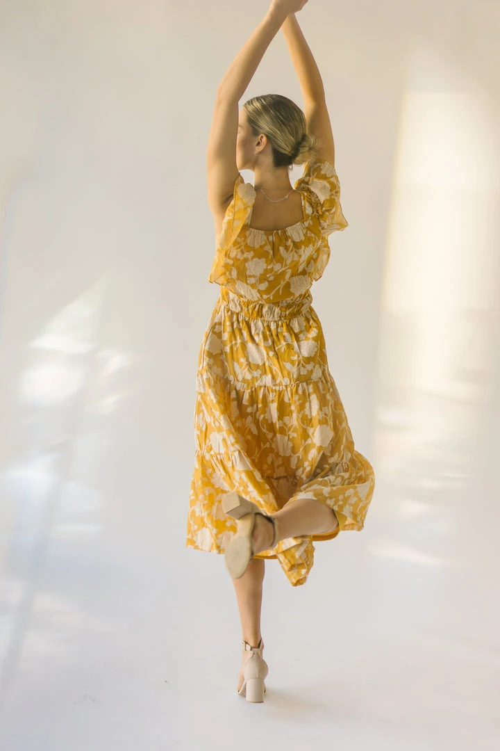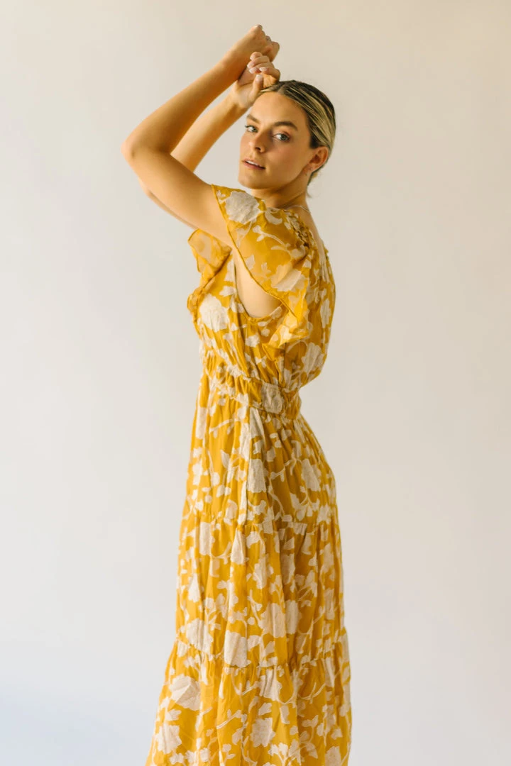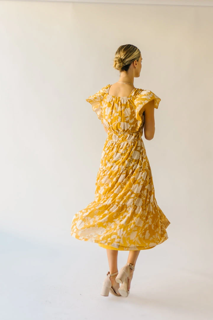 The Imara V-Neck Floral Midi Dress has fine-detailing + a fantastic floral print that takes it to the next level. The v-neckline + ruffles provide a flattering + flexible fit. It is lined.Â