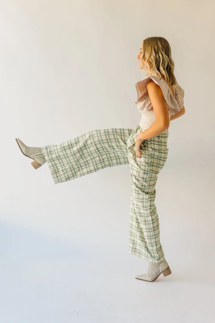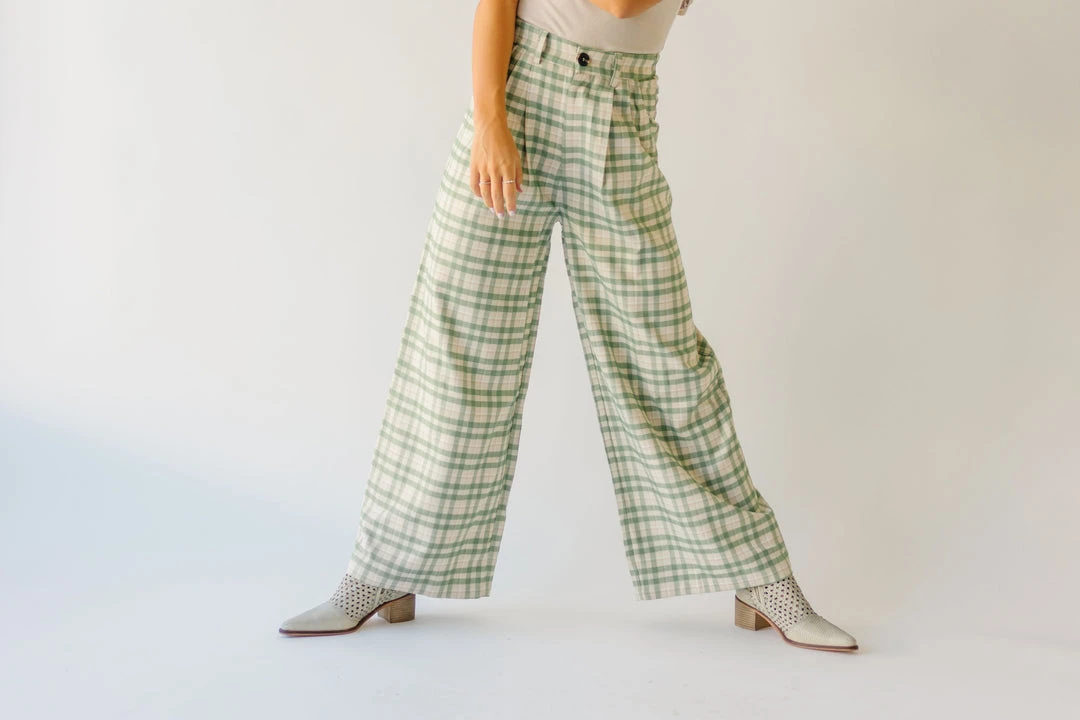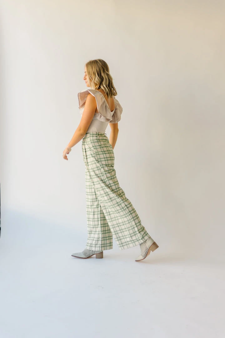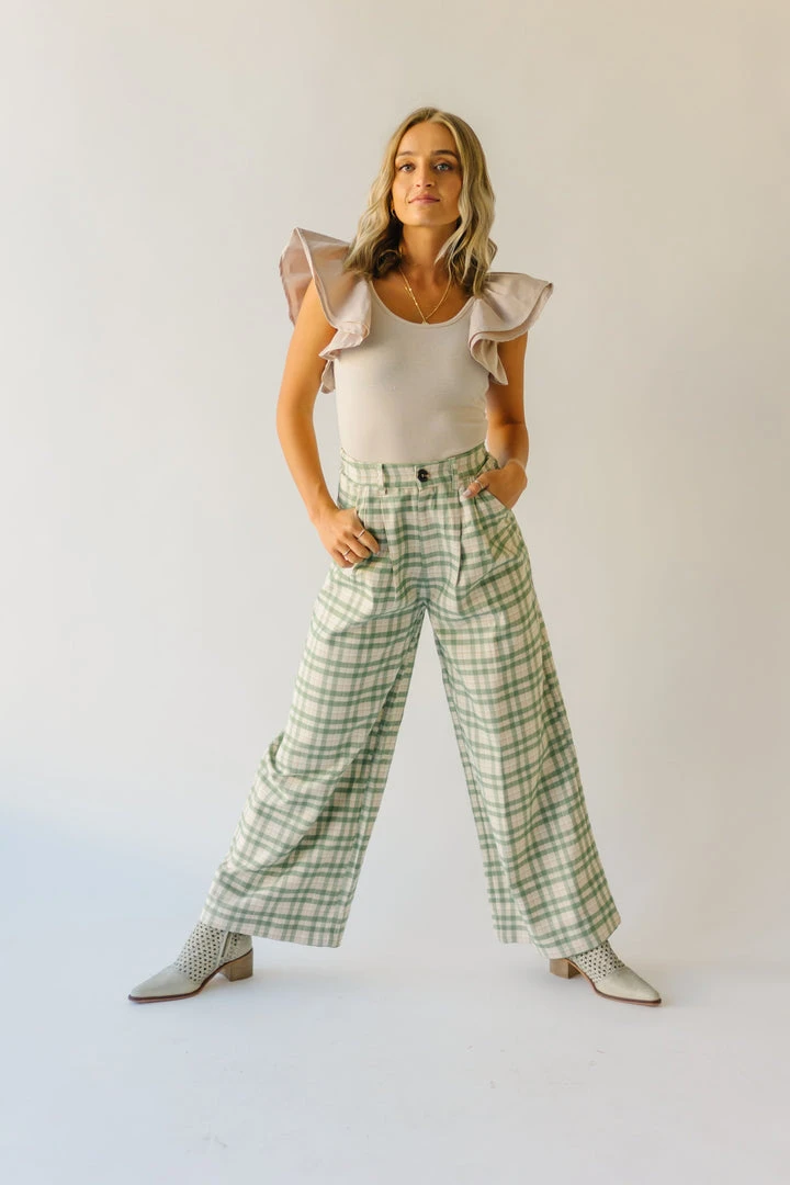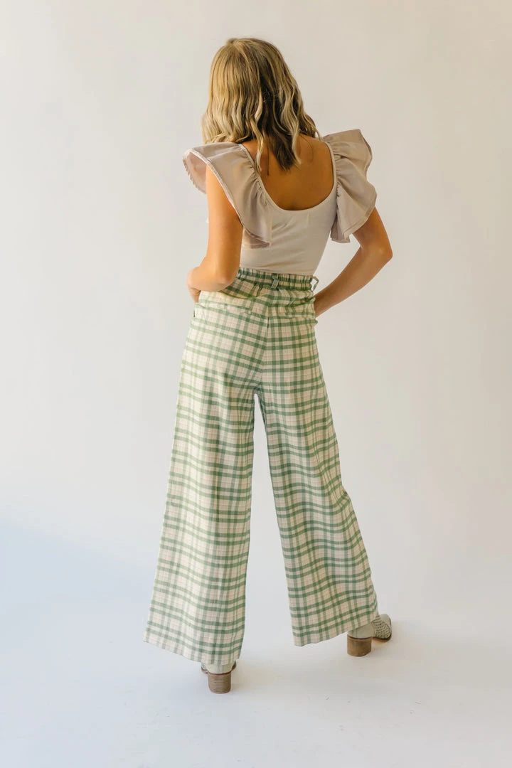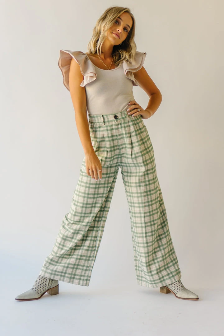 Put your jeans away. The Jayla Wide Leg Trousers have a classic plaid print. They have an elastic band on the back of the waistline. They sit higher on the waistline + have flared legs. They can be dressy or casual. Paired here with The Maddie Ruffle Blouse.