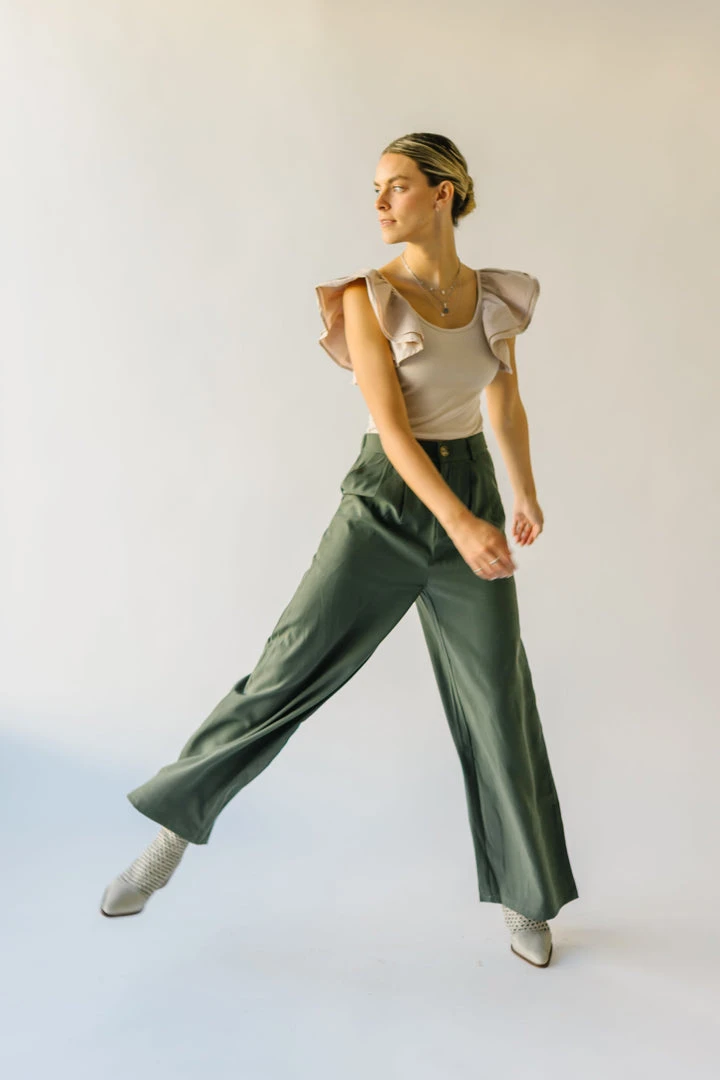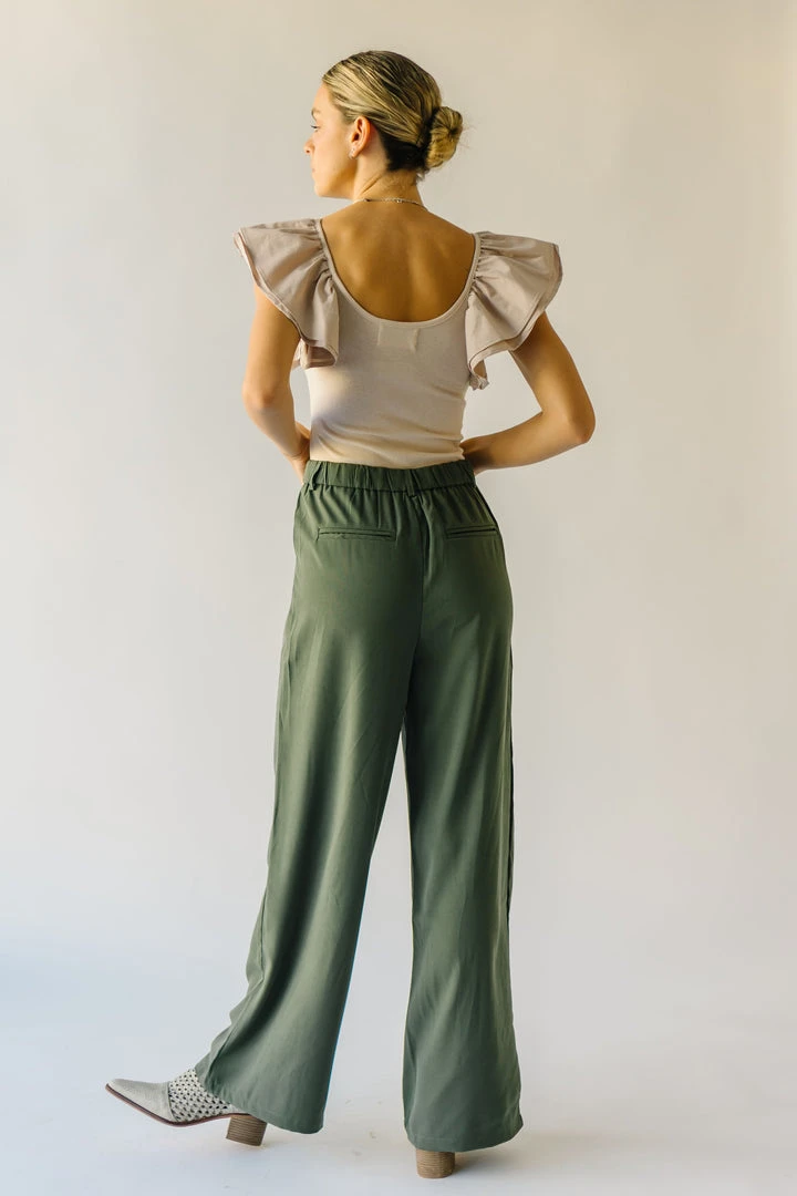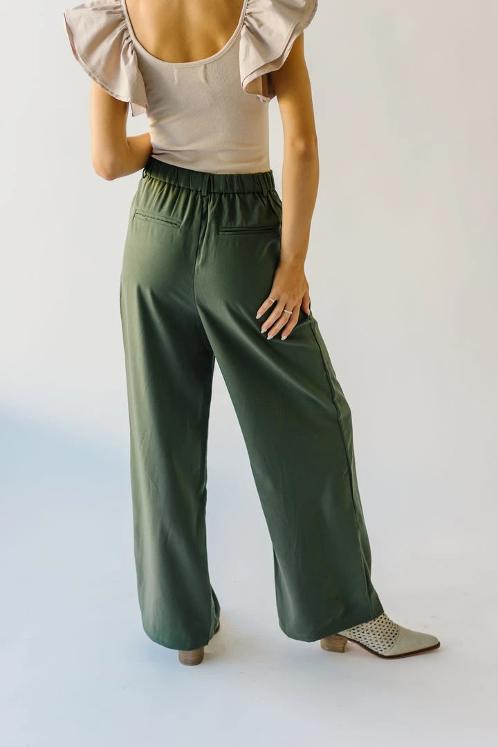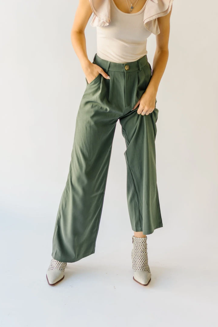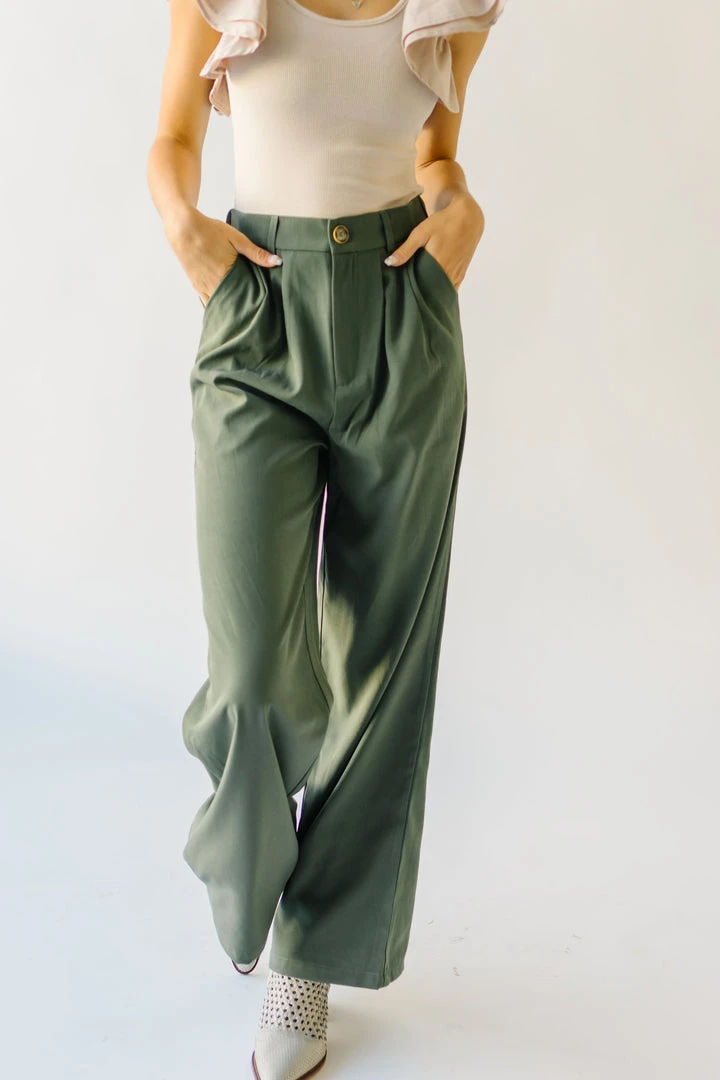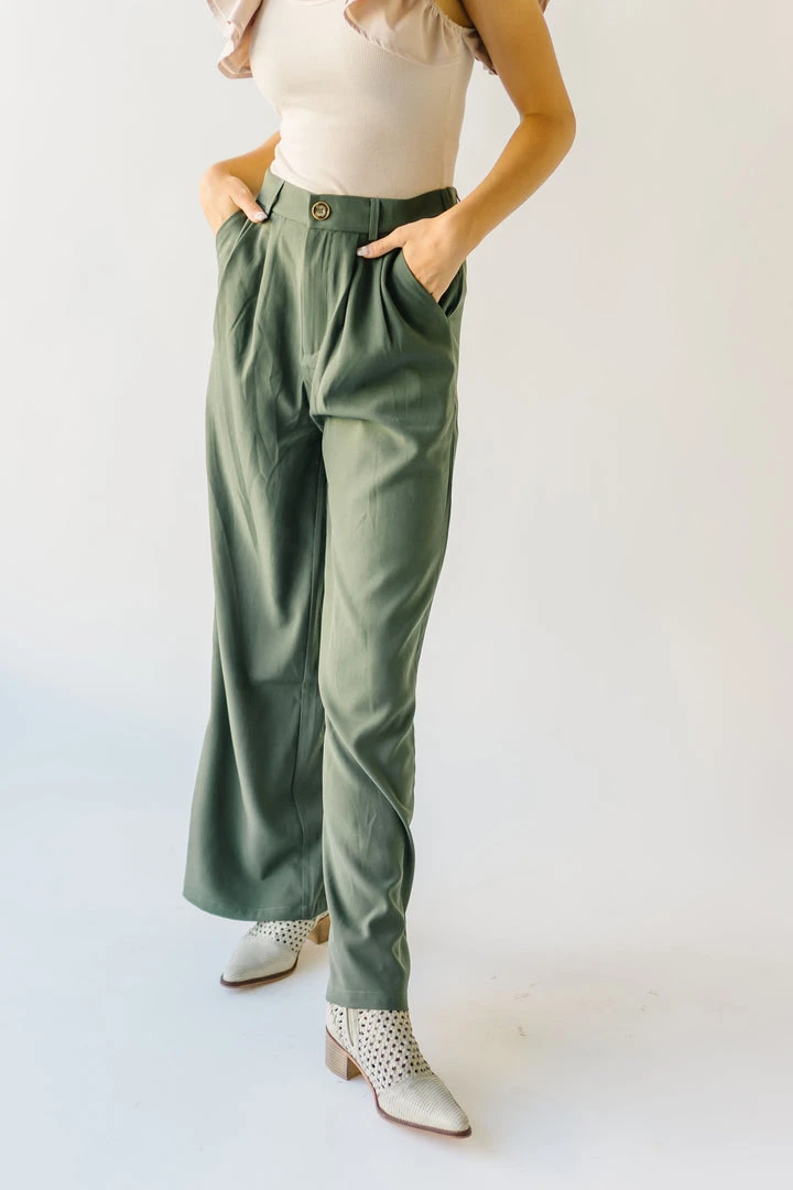 From school, to work, and wherever else you might have to go…the Jorah Pleated Trousers are IT. They have a higher waistline with a pleated front. They have an elastic band on the back of the waistline. They are a straight-leg style in a neutral olive color.Â