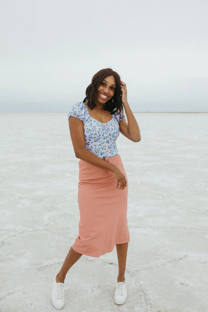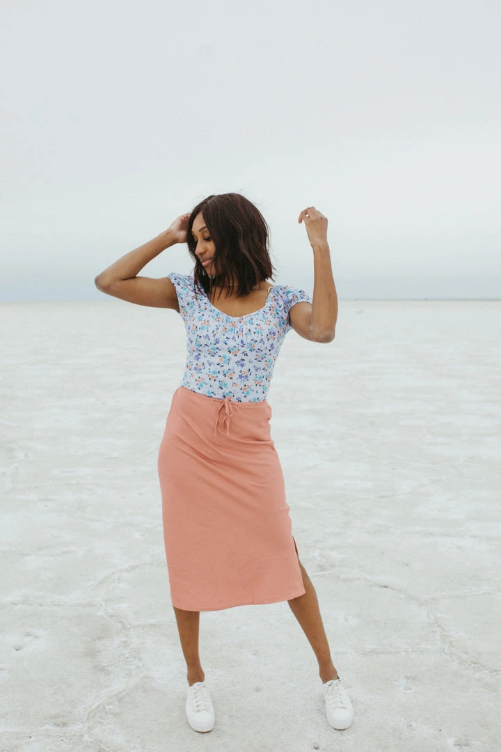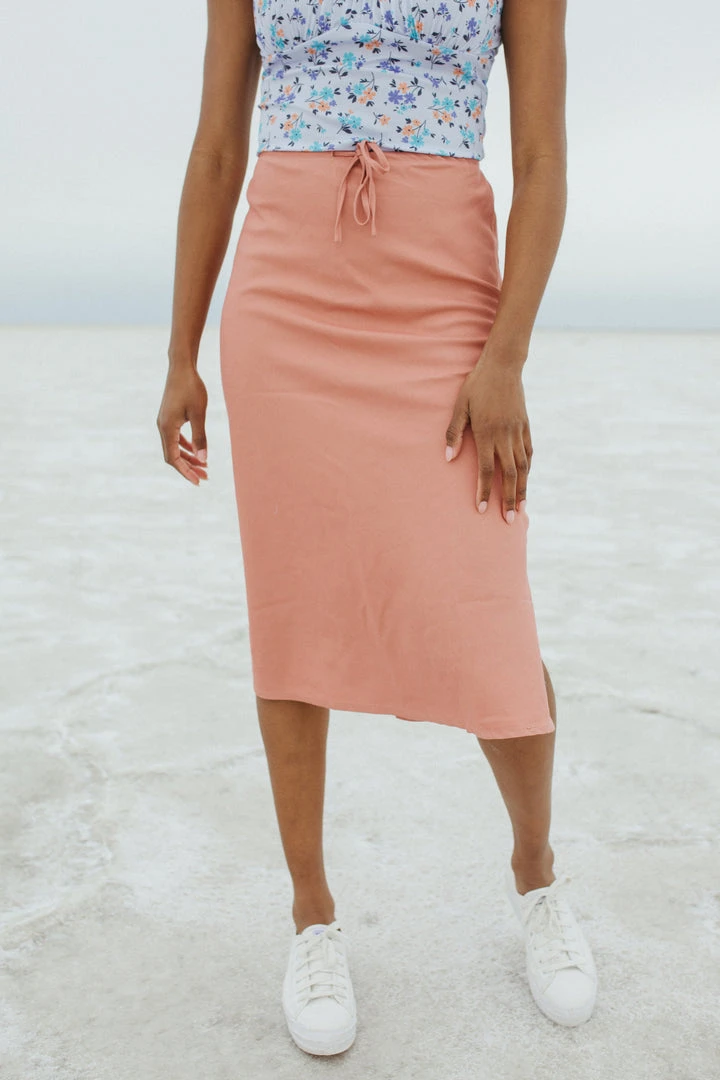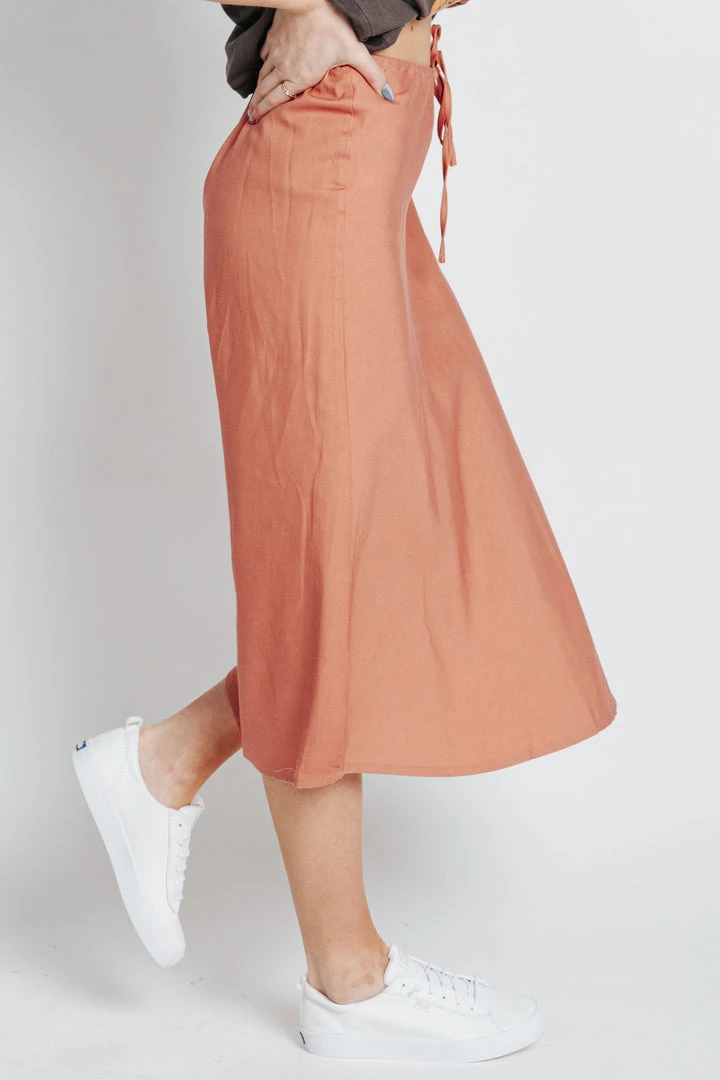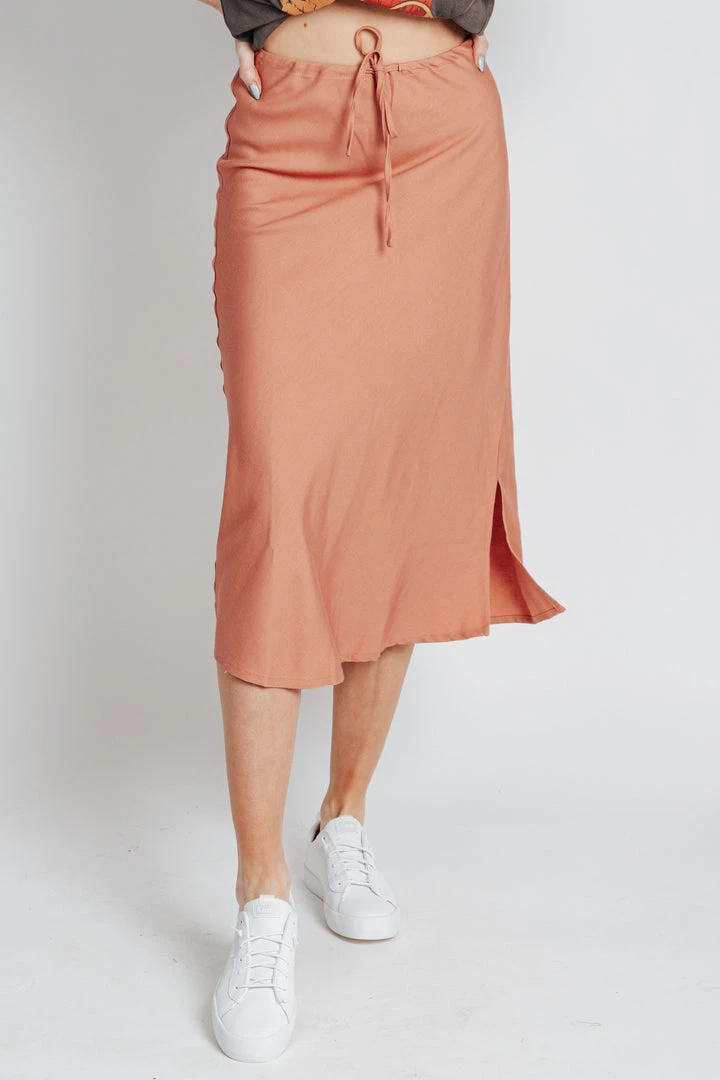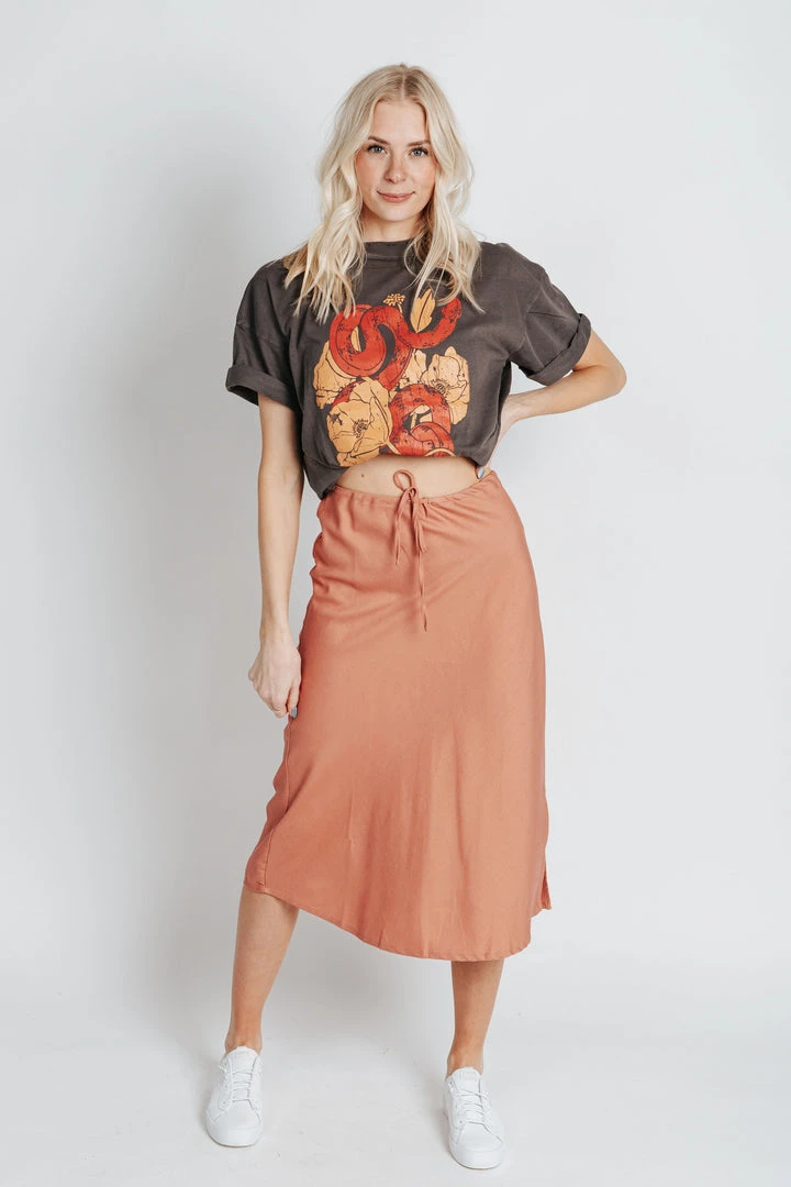 The Kassie has a casual-cool vibe with a comfy adjustable waist. It is a straight style with a side slit for mobility + detail. Paired here with The Poppy Snake Graphic Tee.Â