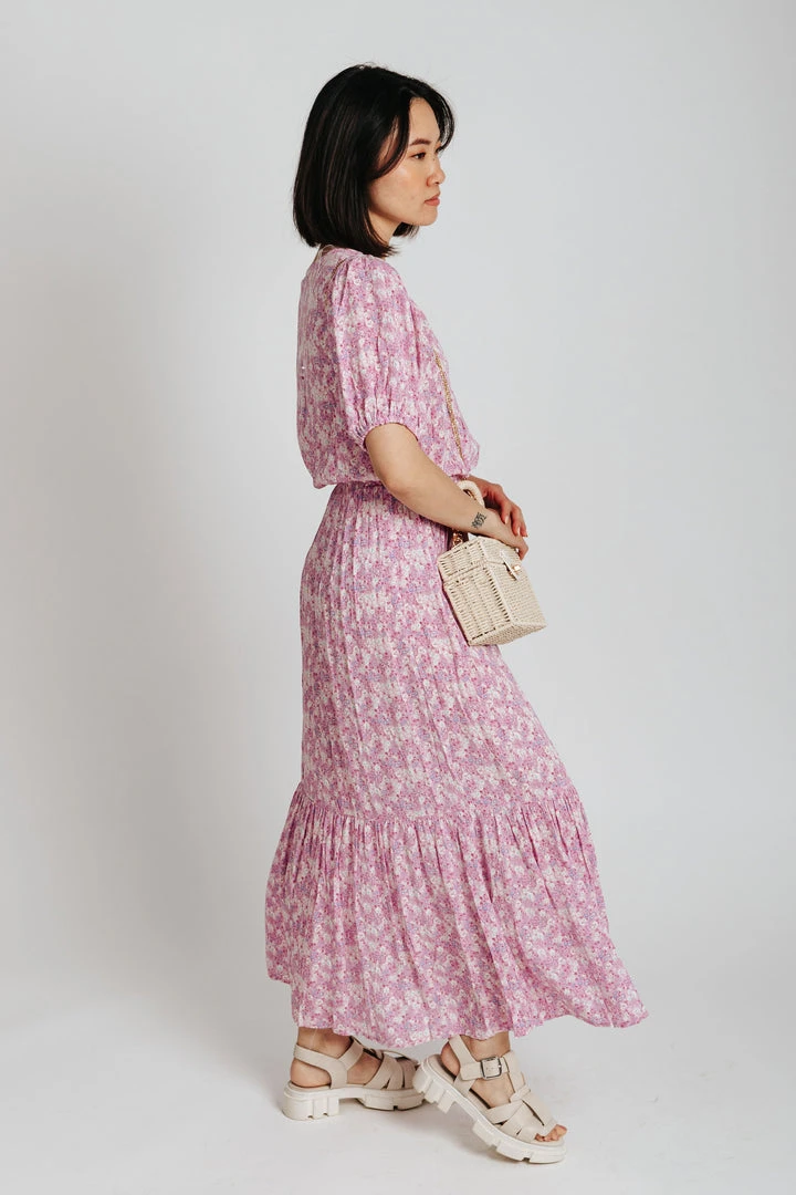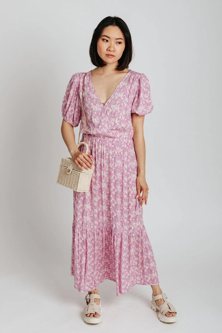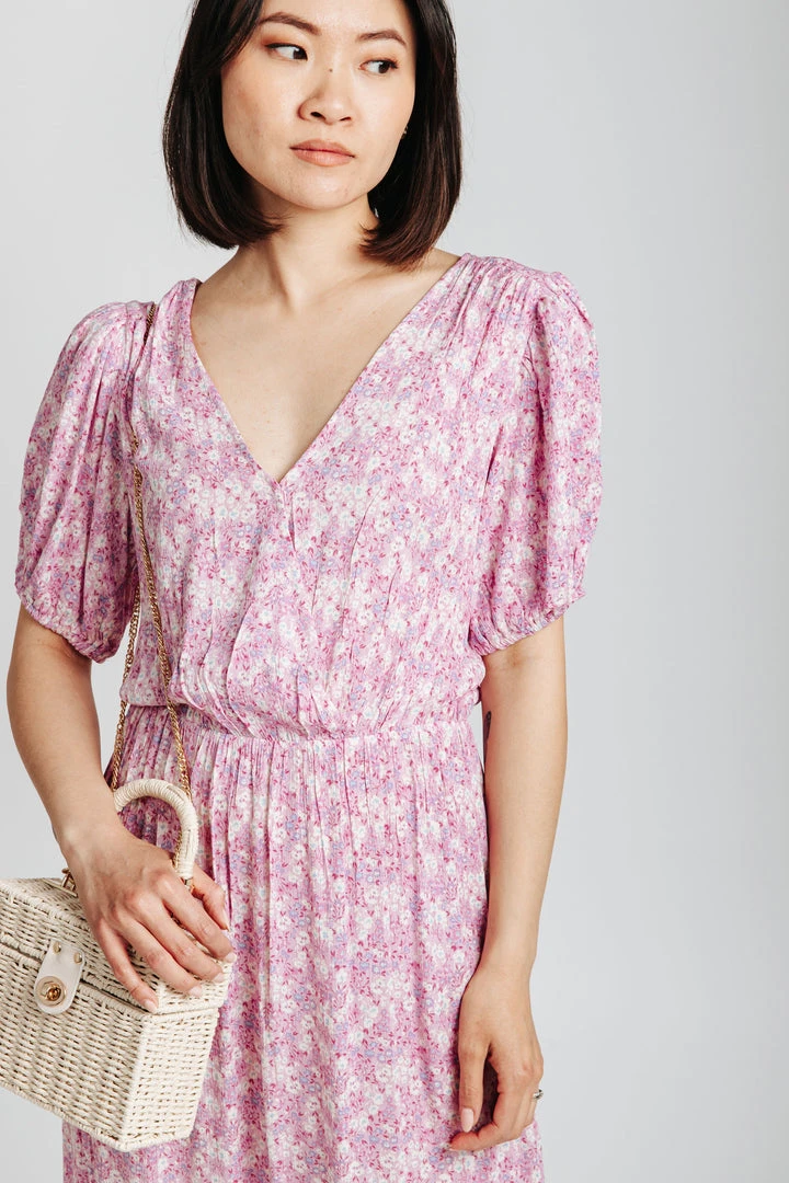 The Lansing Floral Wrap Dress is a nursing-friendly option. It has an elastic waistline. The sleeves are a flattering length with a flexible elastic cuff.Â
