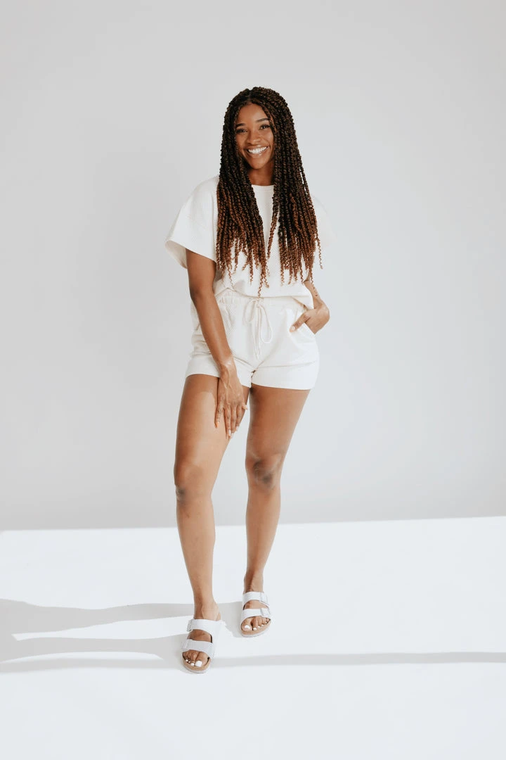 The coolest edition to The Lenny + Ronnie set, literally. The Mozzie Textured Shorts have the same comfy fit, stretchability, and texture you love about the others but are summerfied. They have a flexible waistline, hidden side pockets, and cute coverage.Â