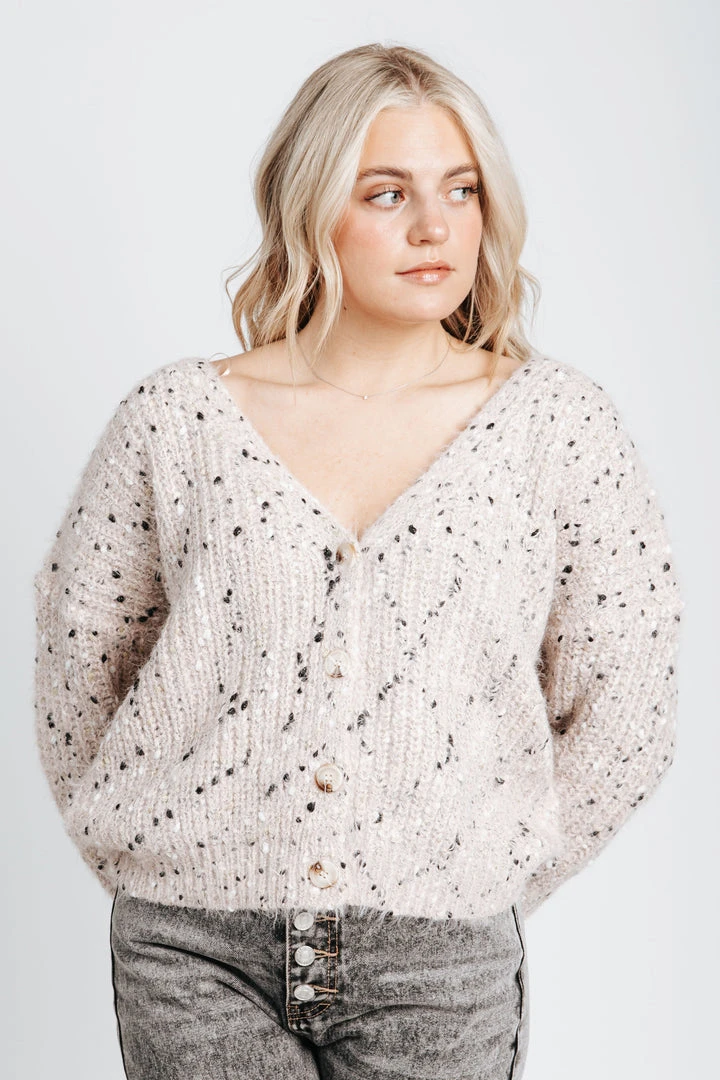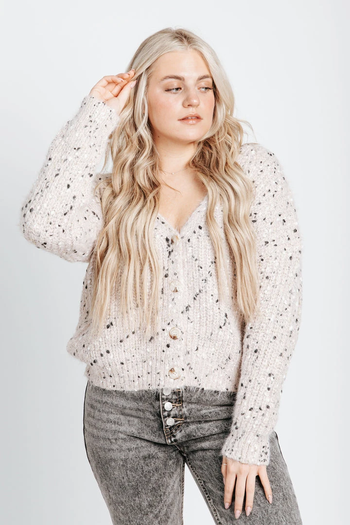Practically perfect in every way. The Patricia Speckled Cardigan is cozy + cropped with buttons down the front. The speckled knit gives gorgeous variation in color + texture.Â