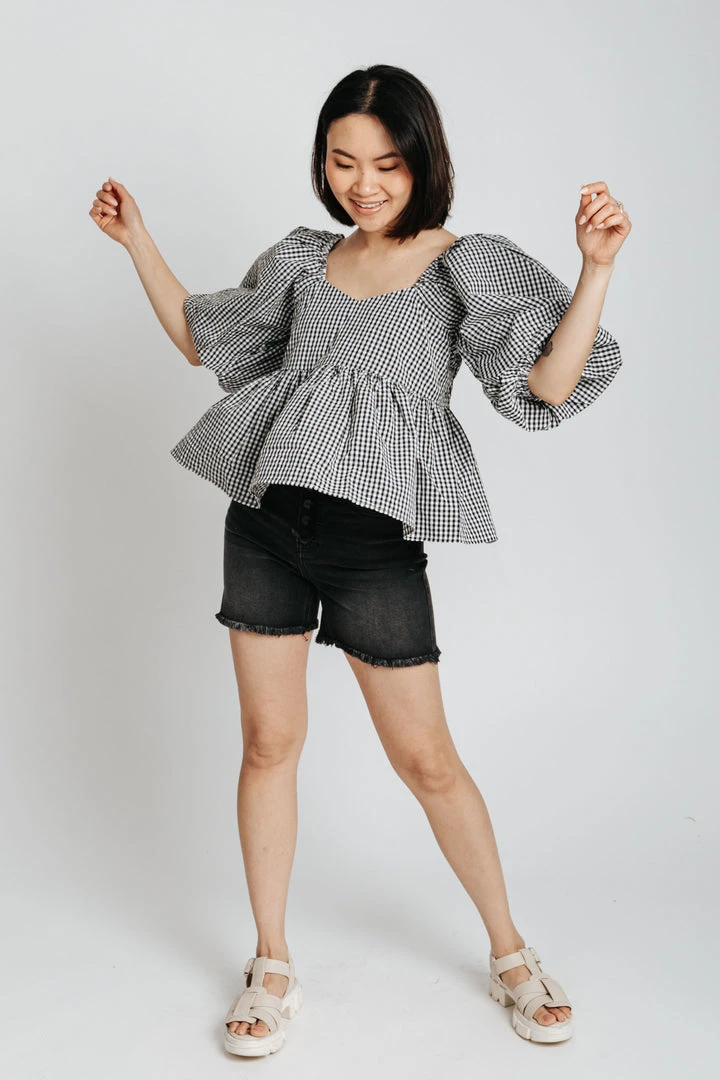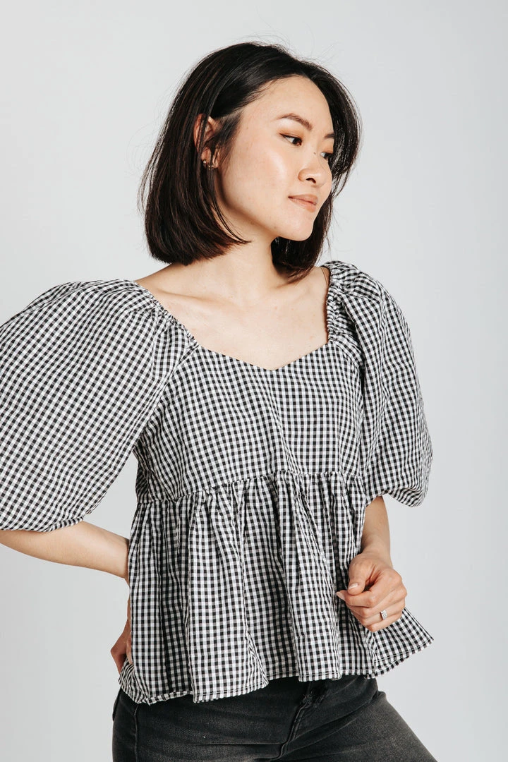 Piper & Scoot Tops The Emma Gingham Blouse In Black