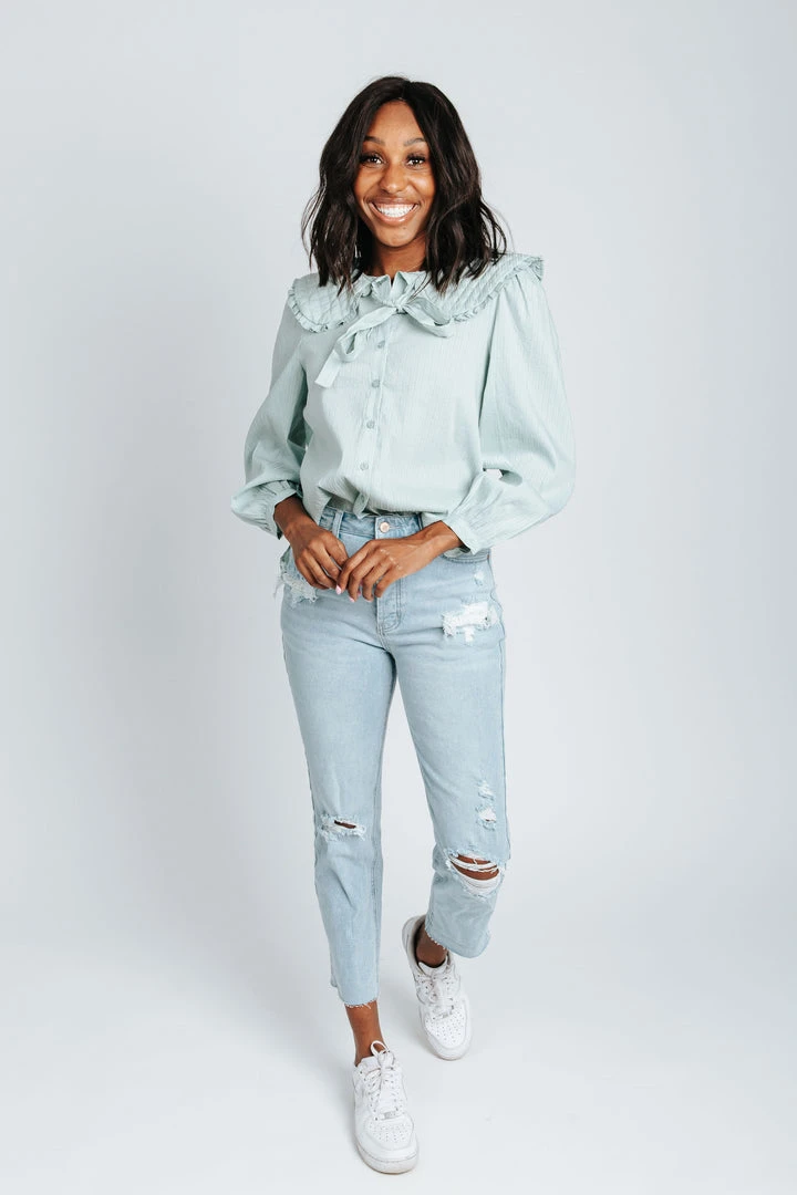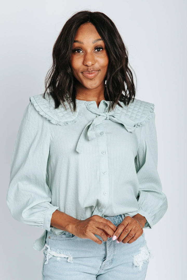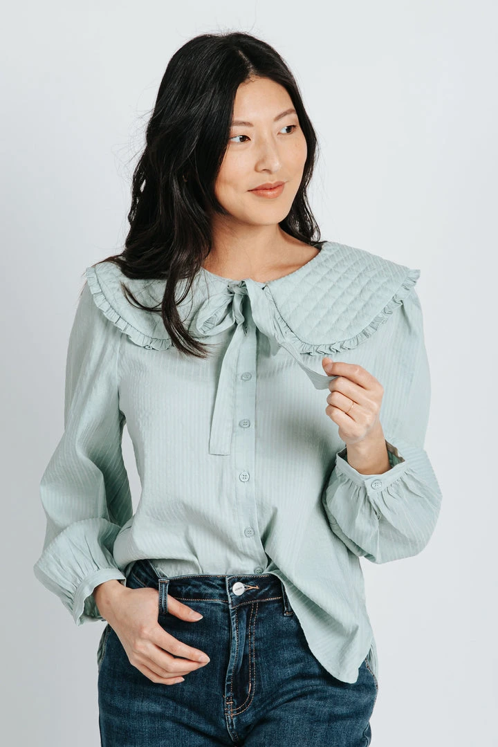 Piper & Scoot Tops The Fantasy Collar Blouse In Mint