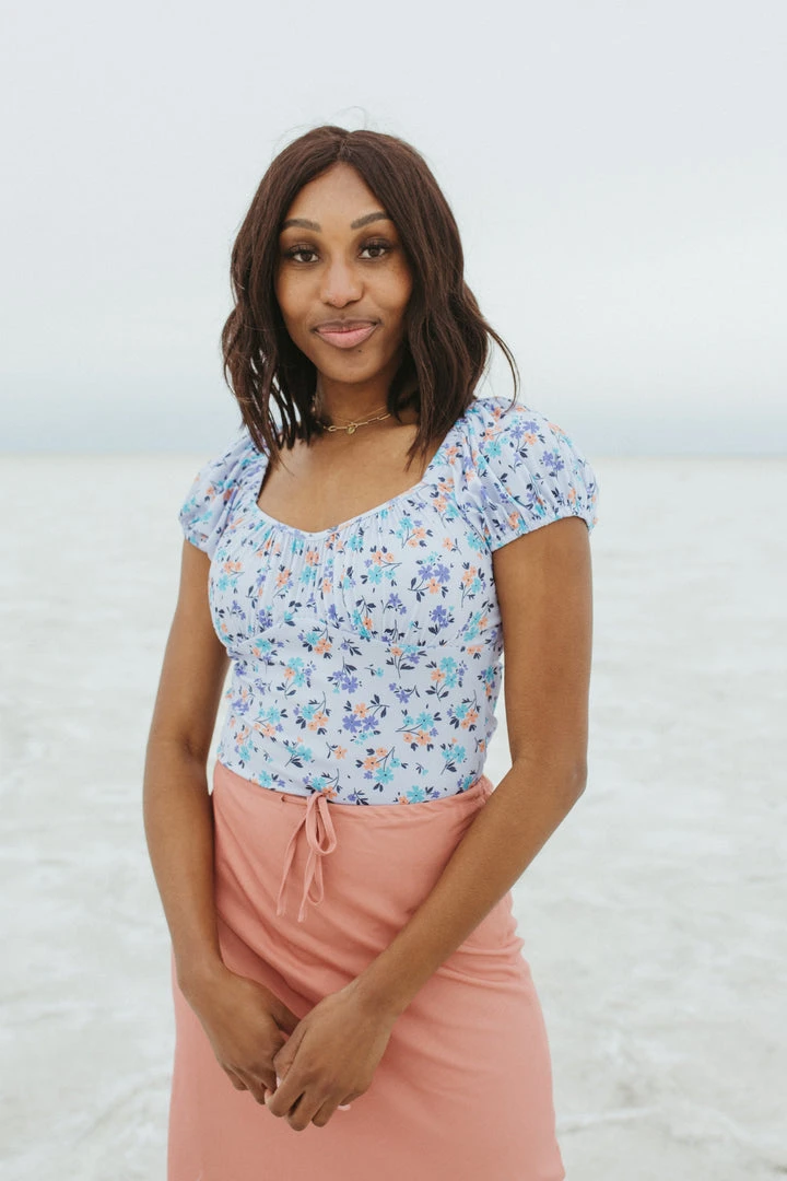 Piper & Scoot Tops The Judd Floral Bodysuit In Blue