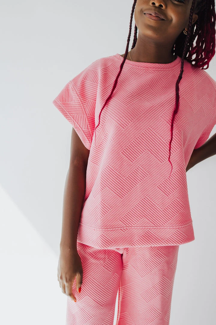 Piper & Scoot Tops The Lenny Textured Top In Bubble Gum Pink