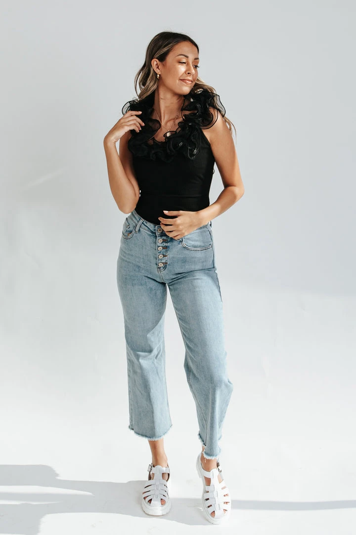 Piper & Scoot Tops The Niccole Ruffle Bodysuit In Black